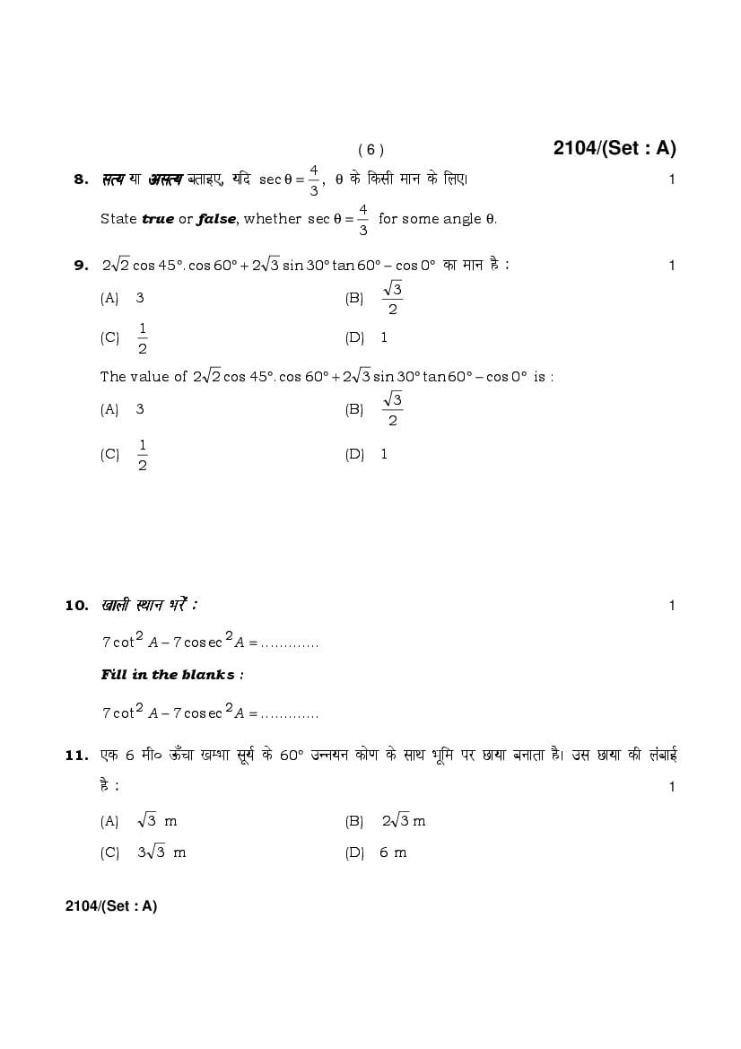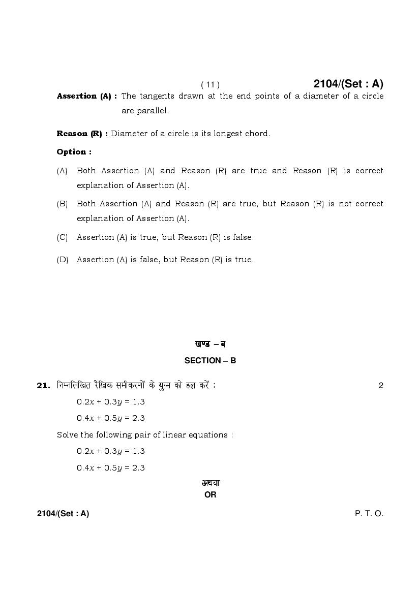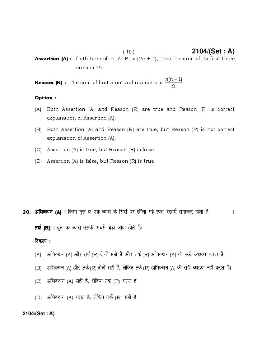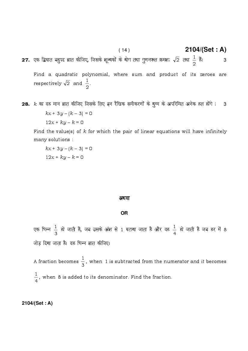 | More Old Papers for This Class | Haryana Board Previous Year Question Papers for Class 10th |