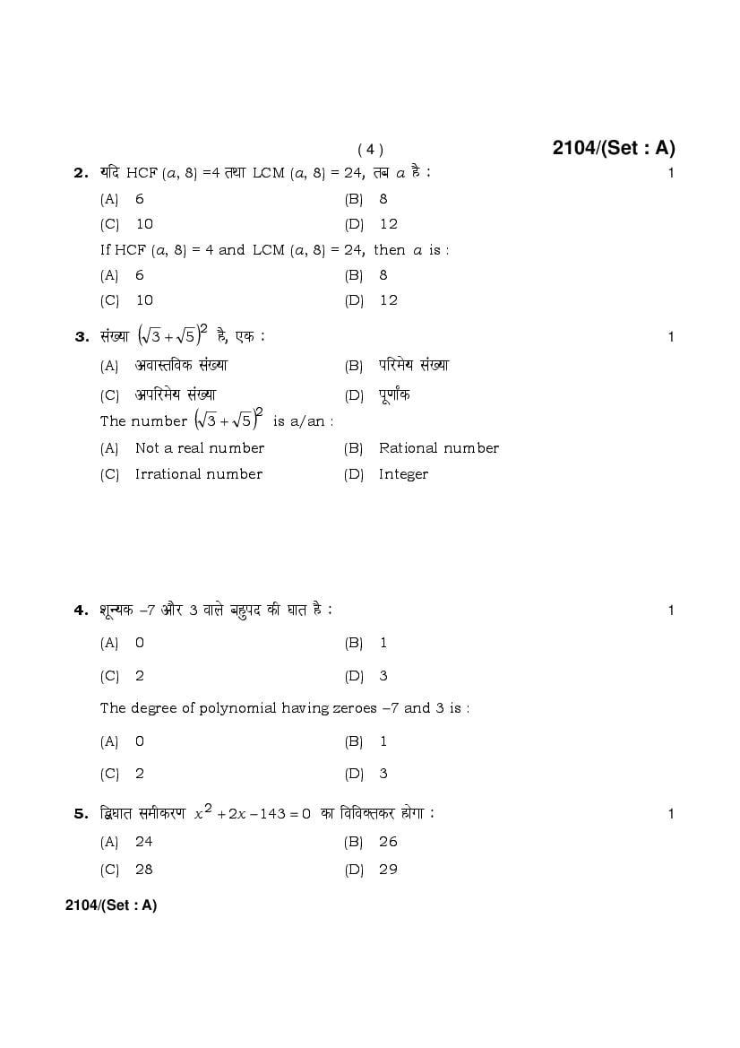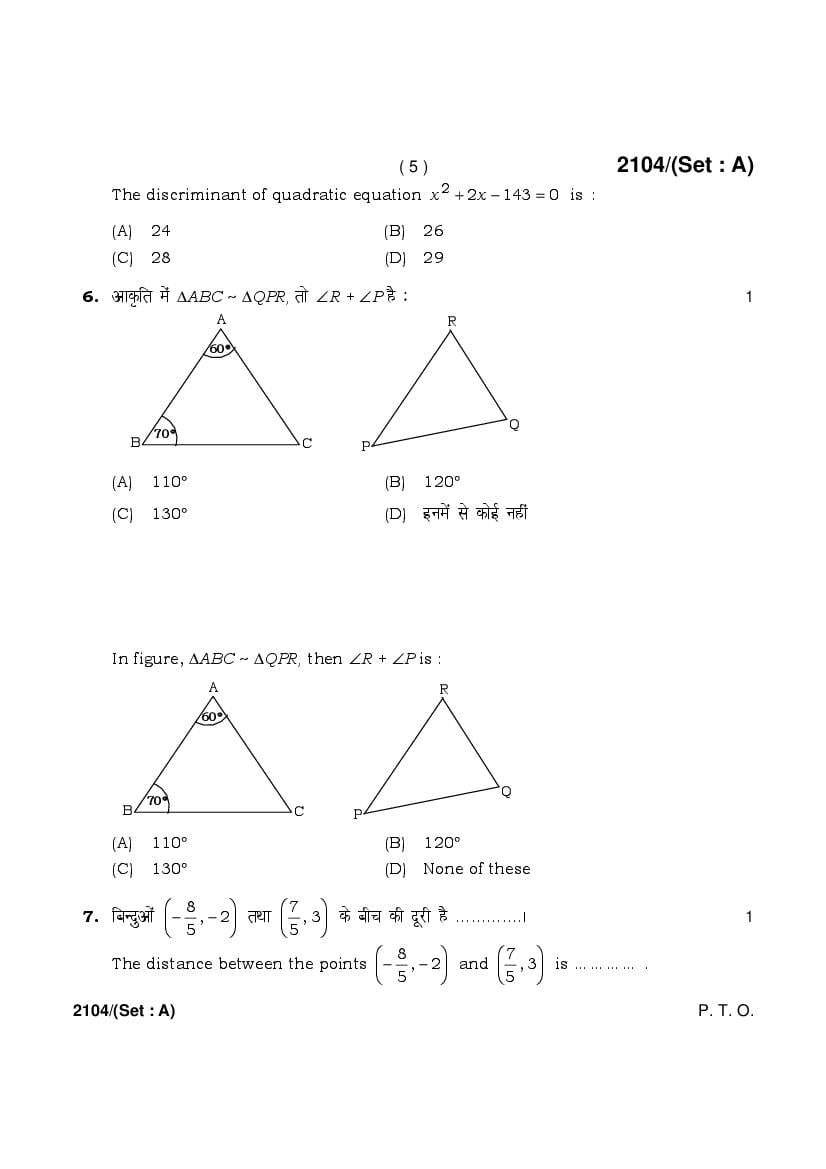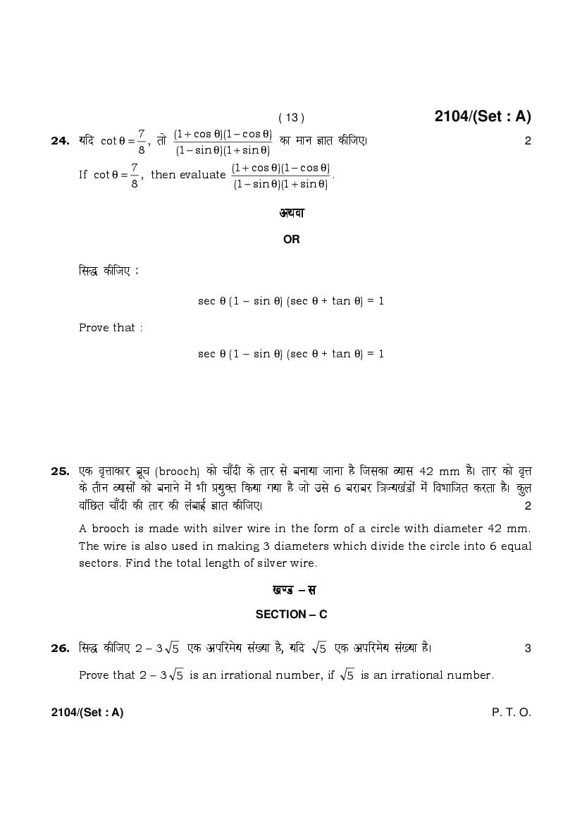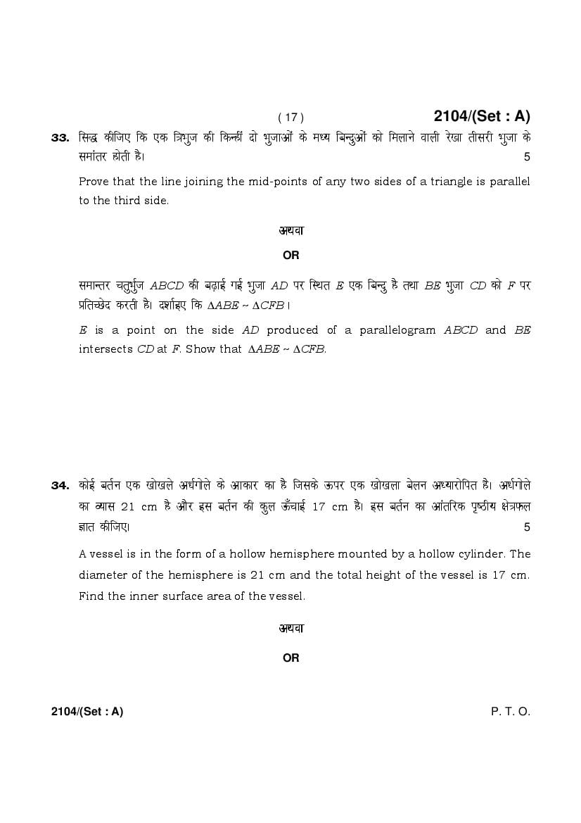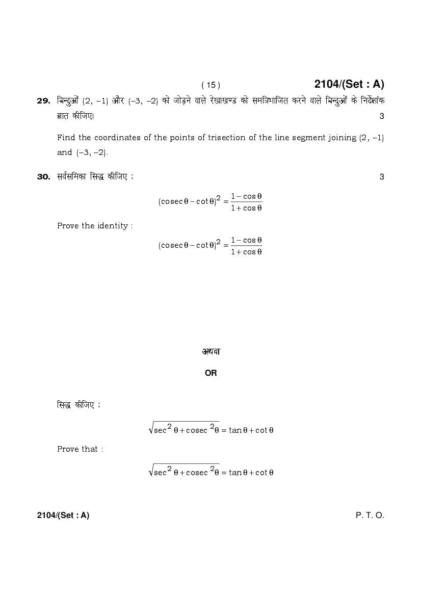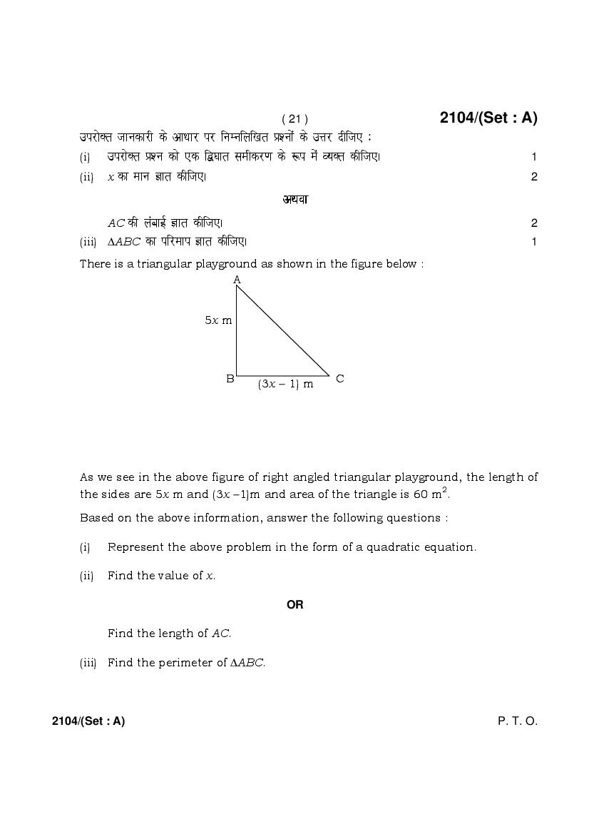 More HBSE 10th Mathematics Standard Question Paper – Click Here for more PYQP PDF