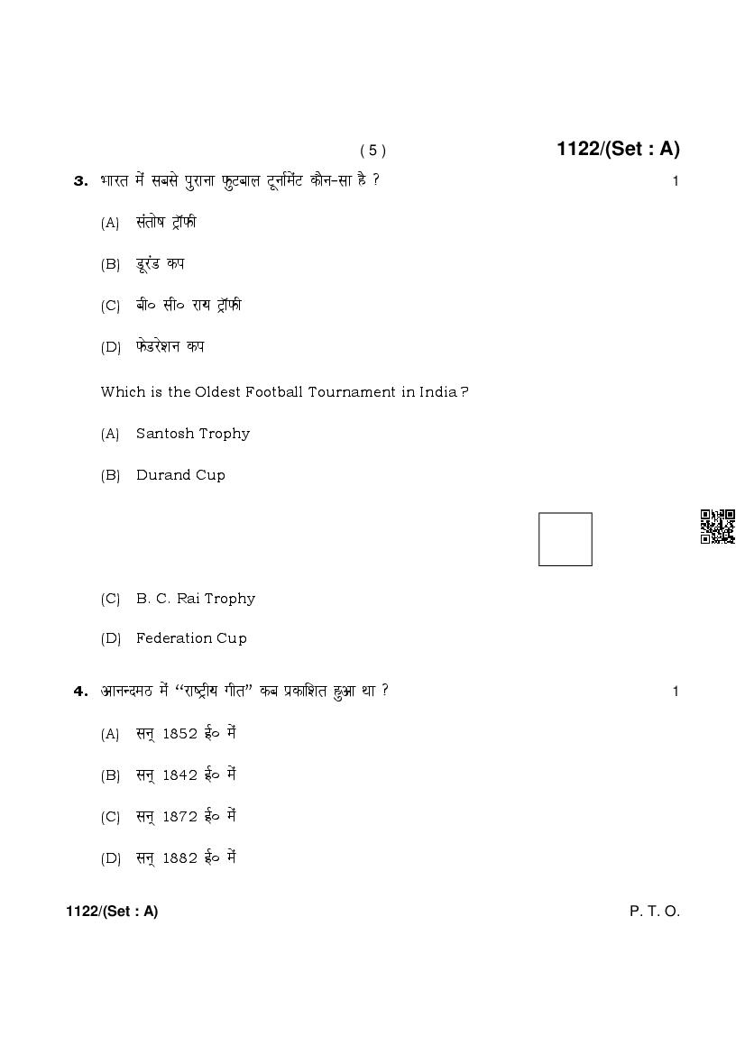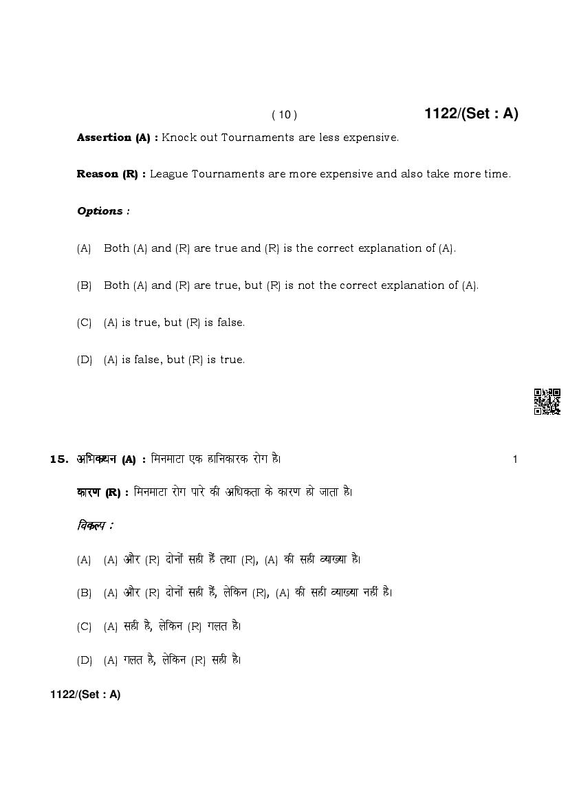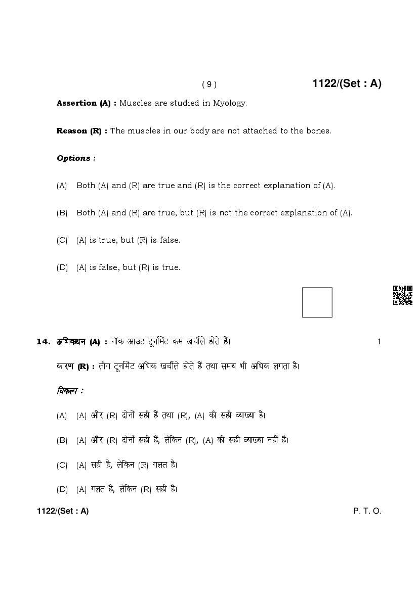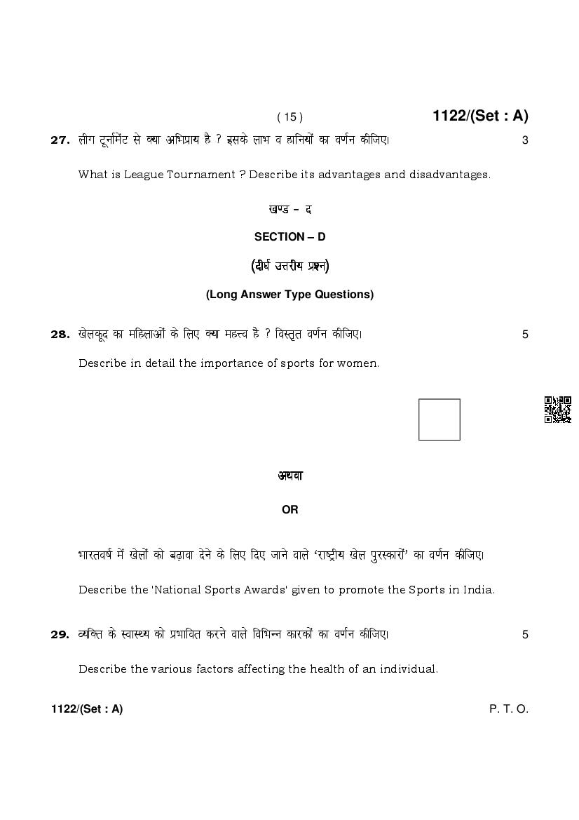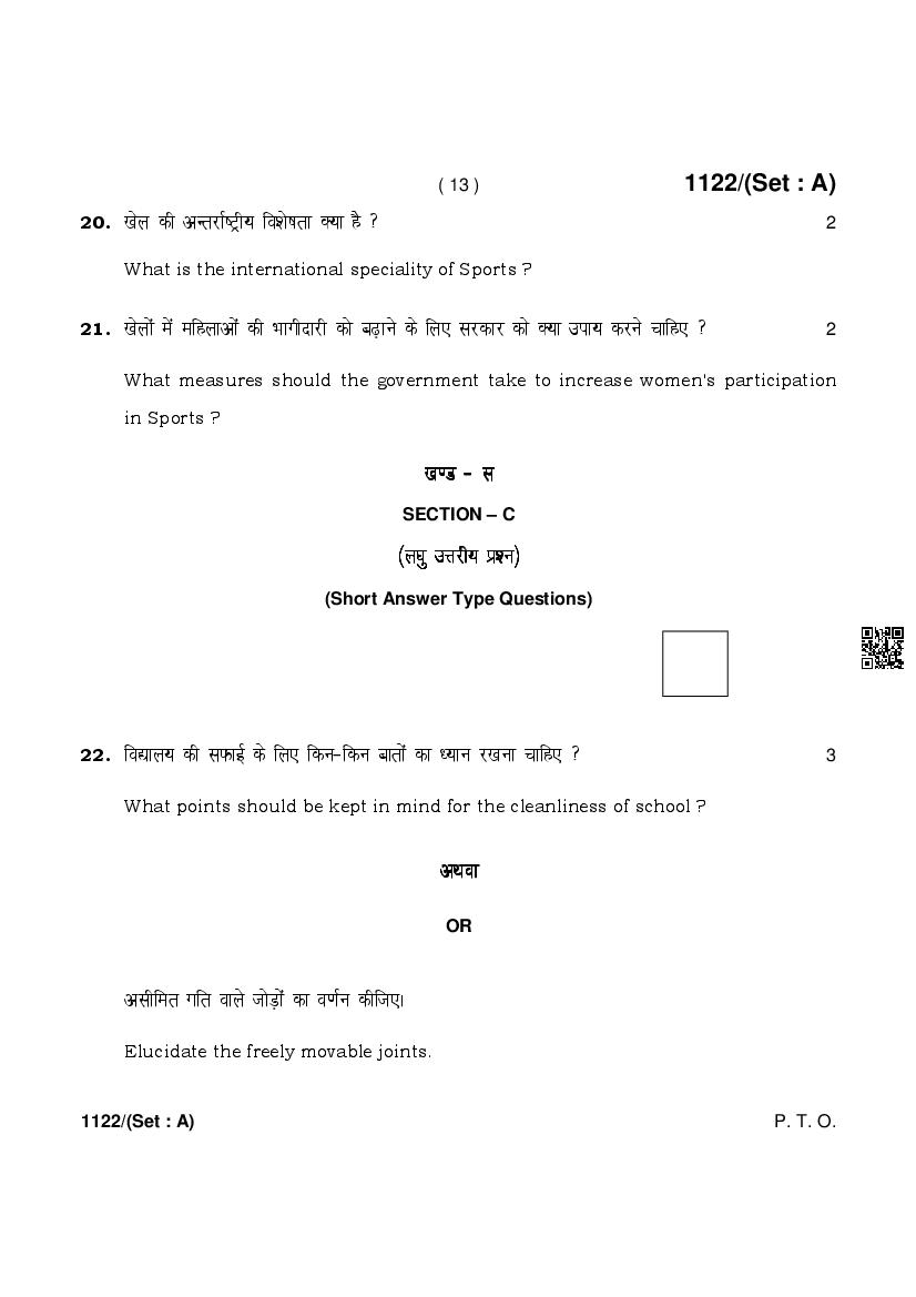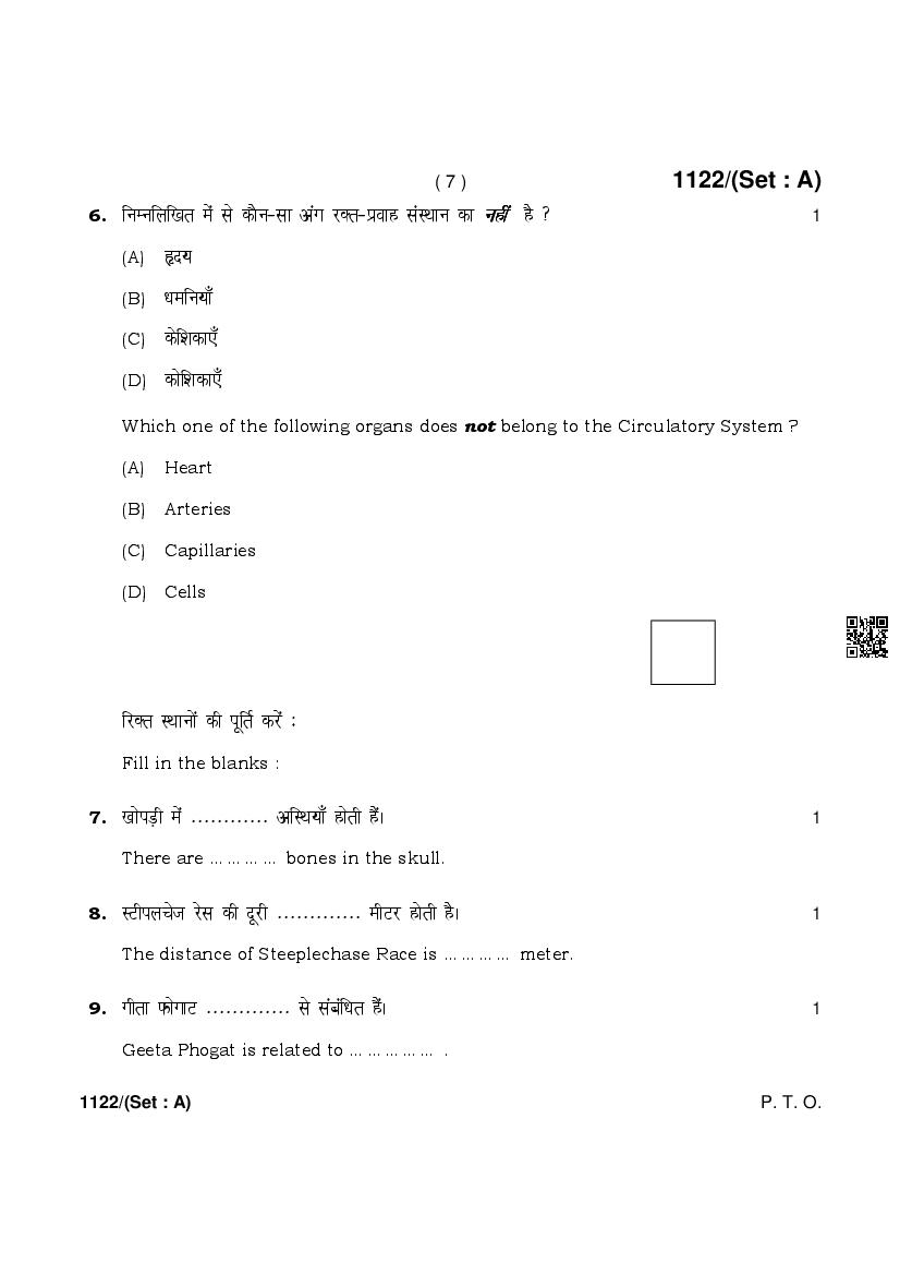 More HBSE 10th Physical Education & Sports Question Paper – Click Here for more PYQP PDF