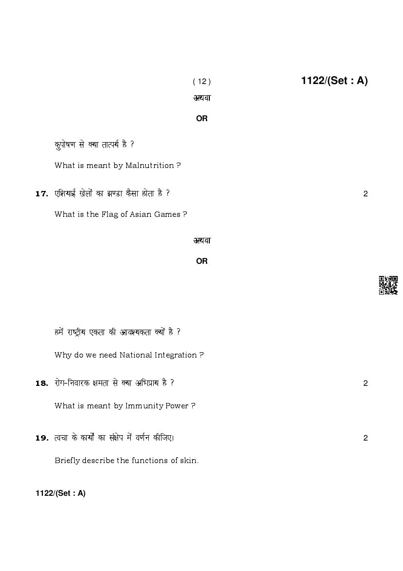 HBSE Class 10 Question Paper 2024 Physical and Health Education View Download