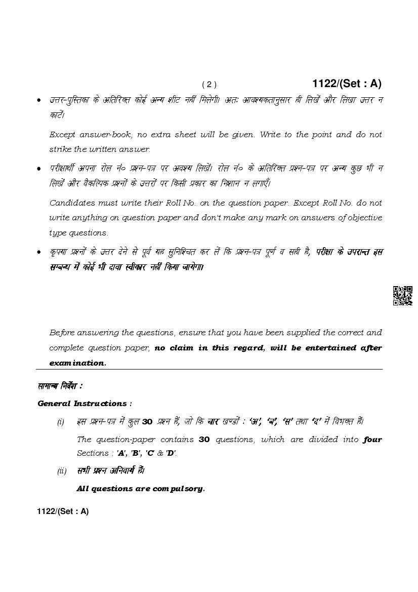 | More Old Papers for This Board | Haryana Board Previous Year Question Papers |