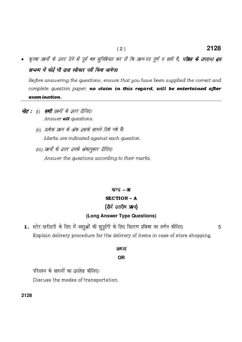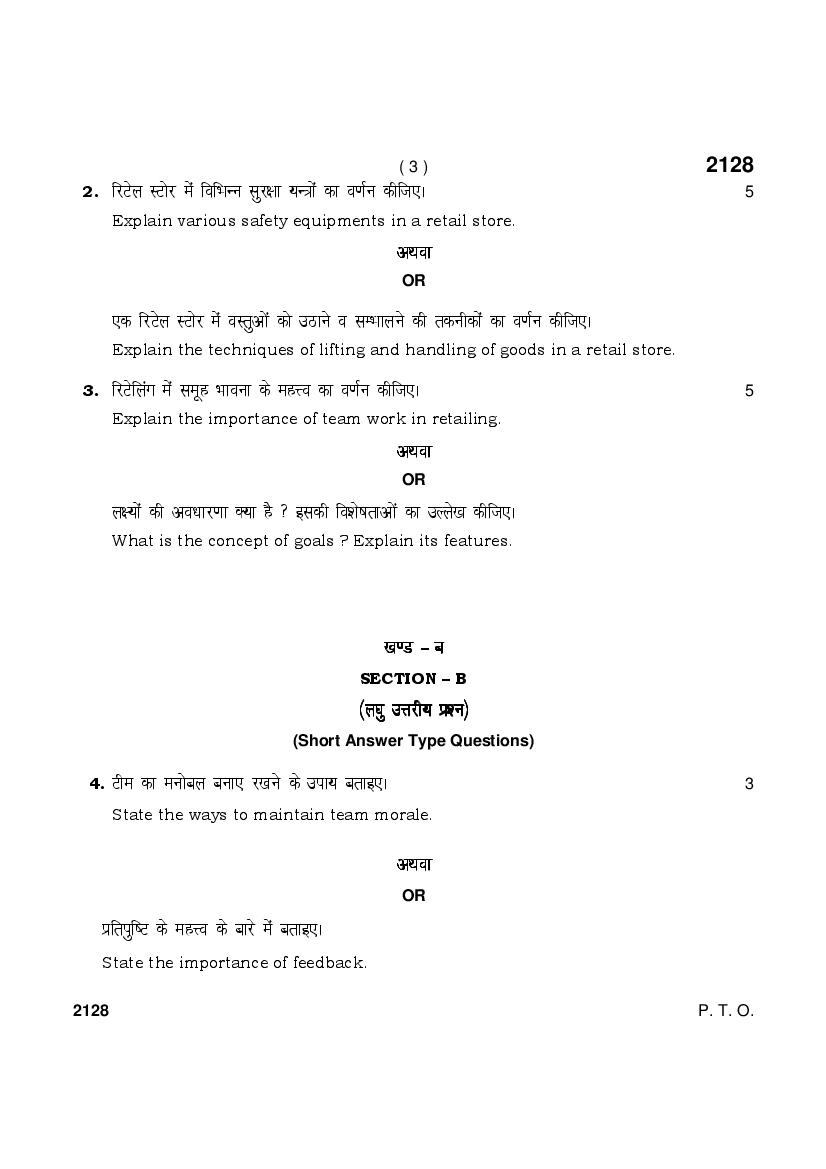 HBSE 10th Retail Previous Year Question Paper PDF