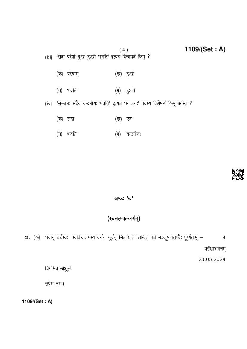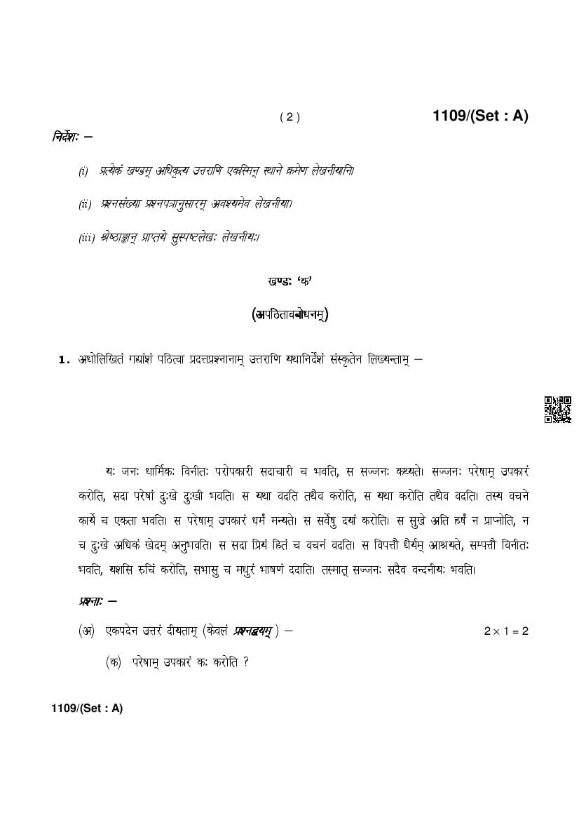 More HBSE 10th Sanskrit Question Paper – Click Here for more PYQP PDF