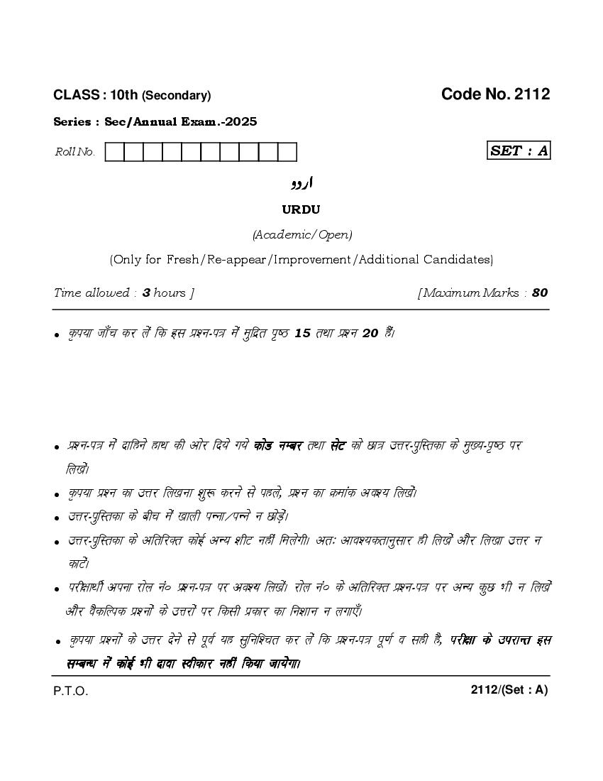 More HBSE 10th Urdu Question Paper – Click Here for more PYQP PDF