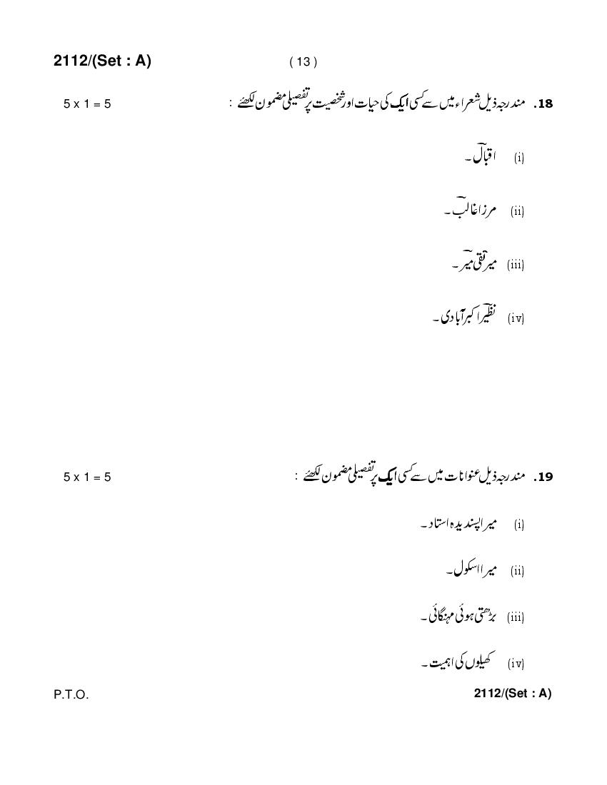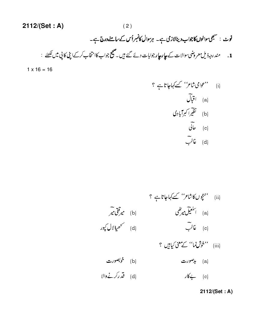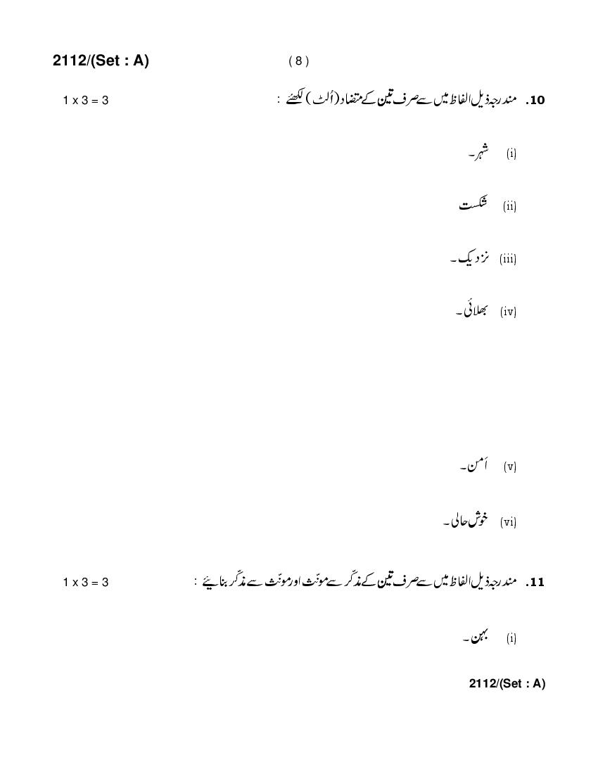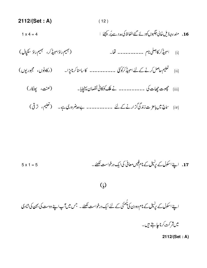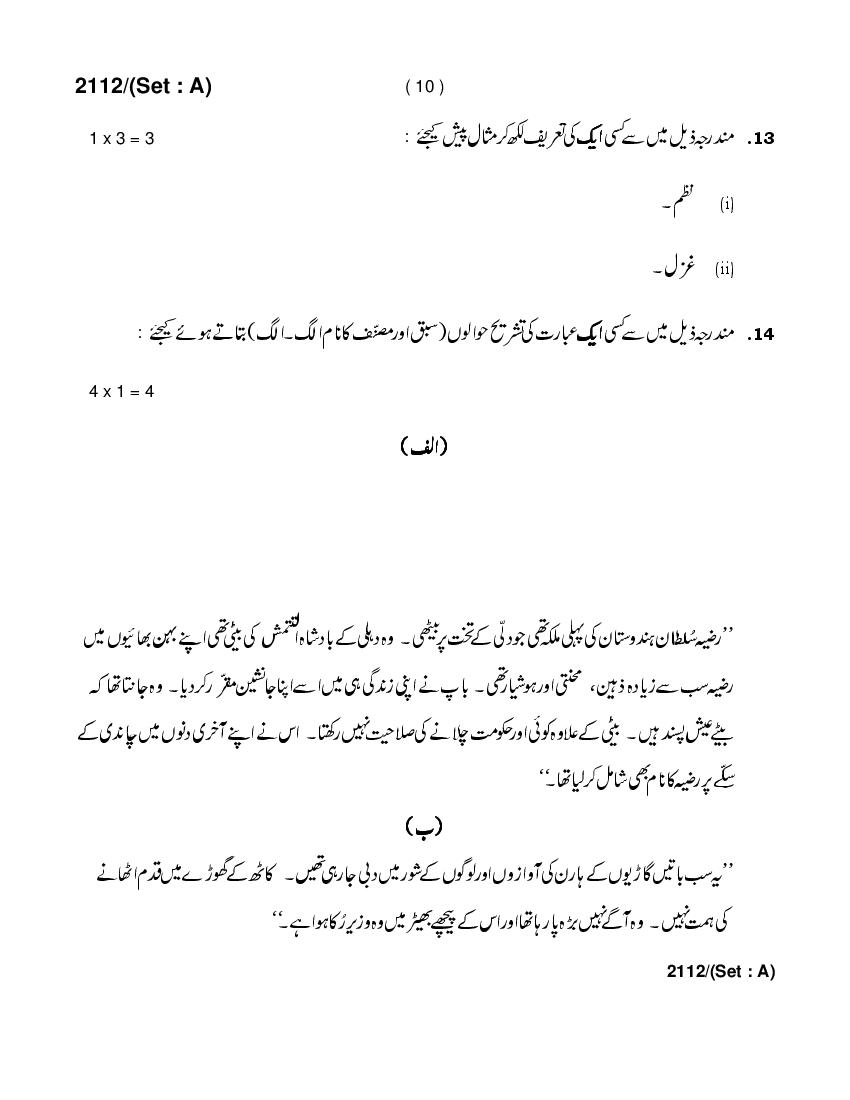 HBSE 10th Urdu Previous Year Question Paper PDF