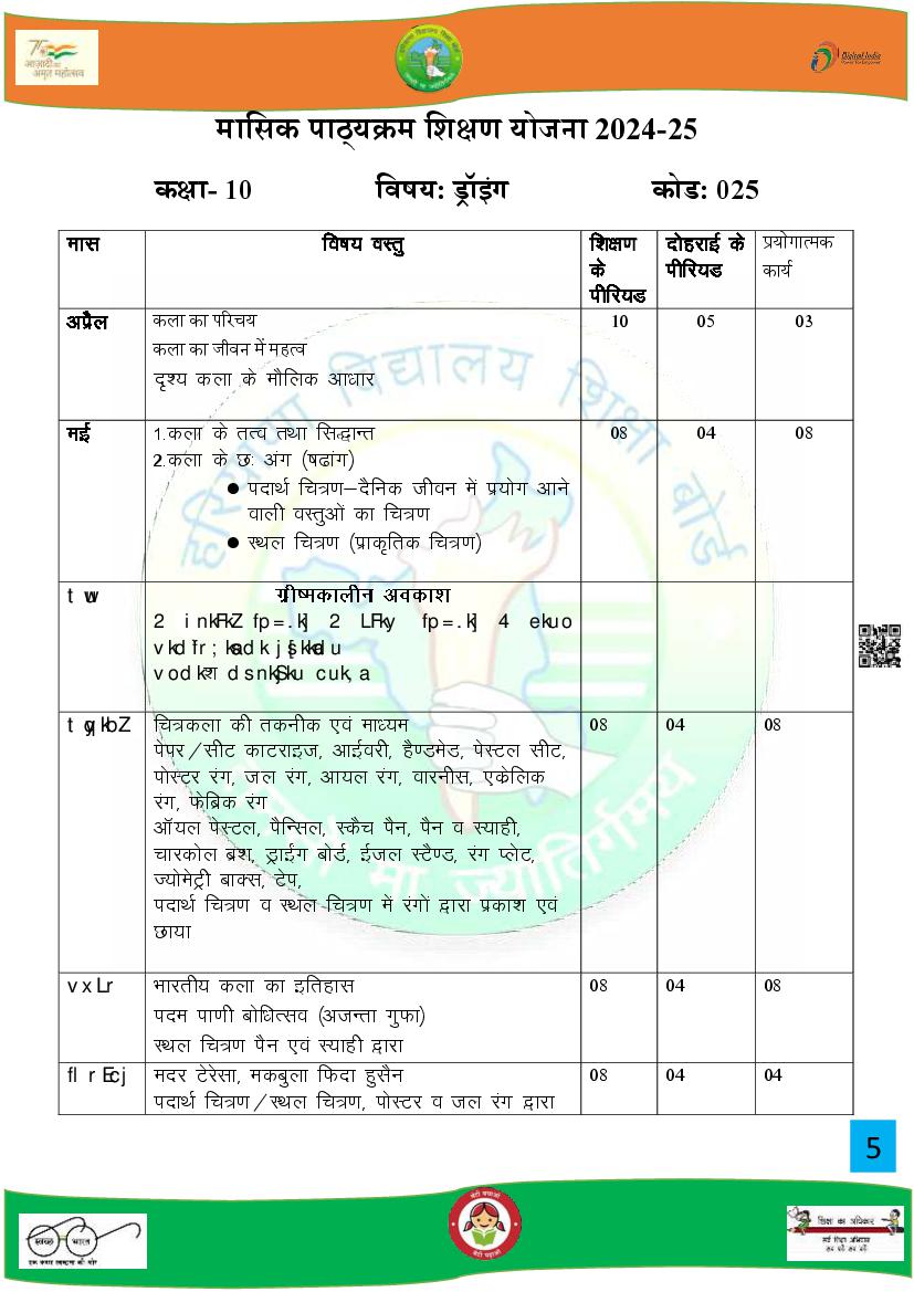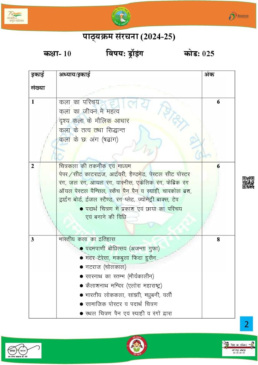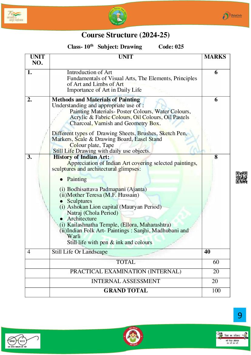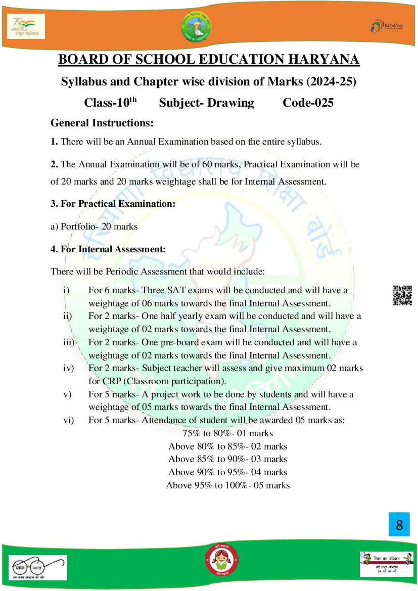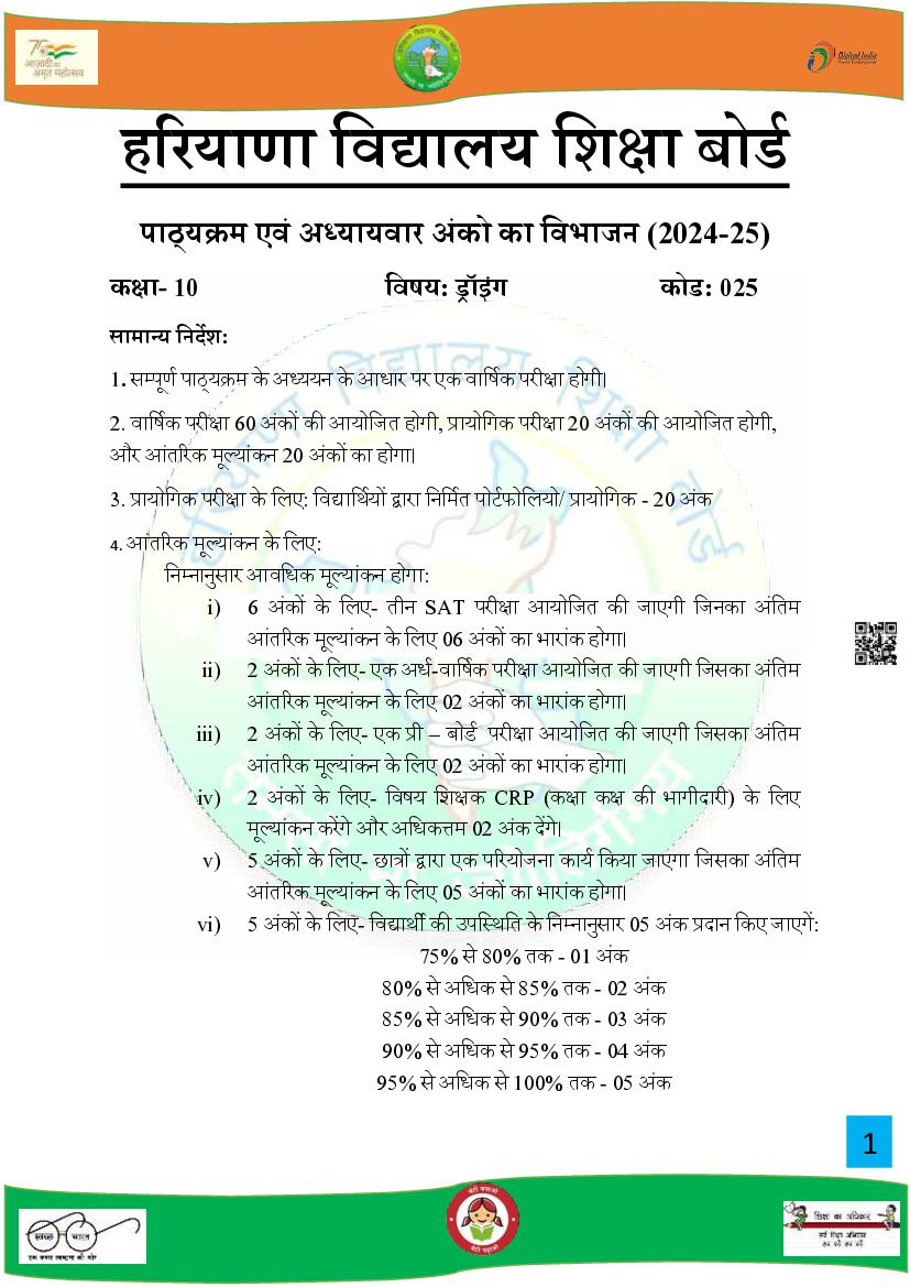 HBSE Class 10 Syllabus 2025 Drawing View Download