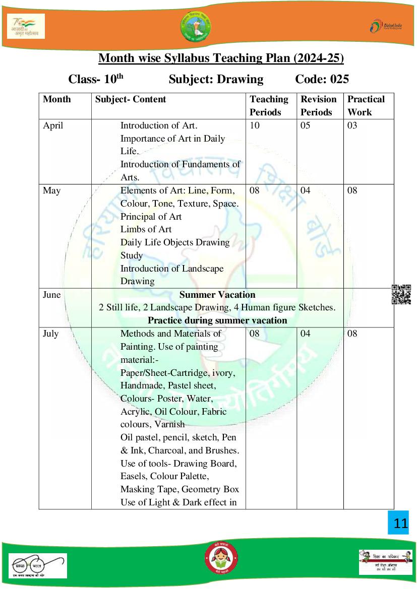HBSE 10th Syllabus 2025 Drawing PDF