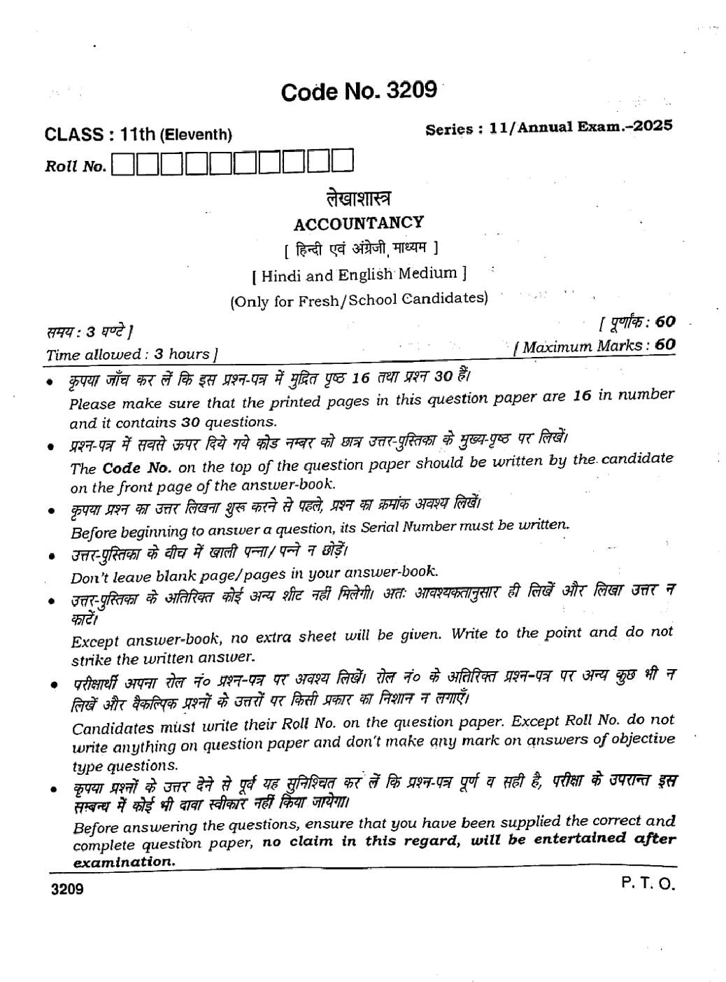 The HBSE Previous Year Question Papers 2026, 2025, 2024, 2023, 2022, 2021 and more of class 11 Accountancy is as follows.