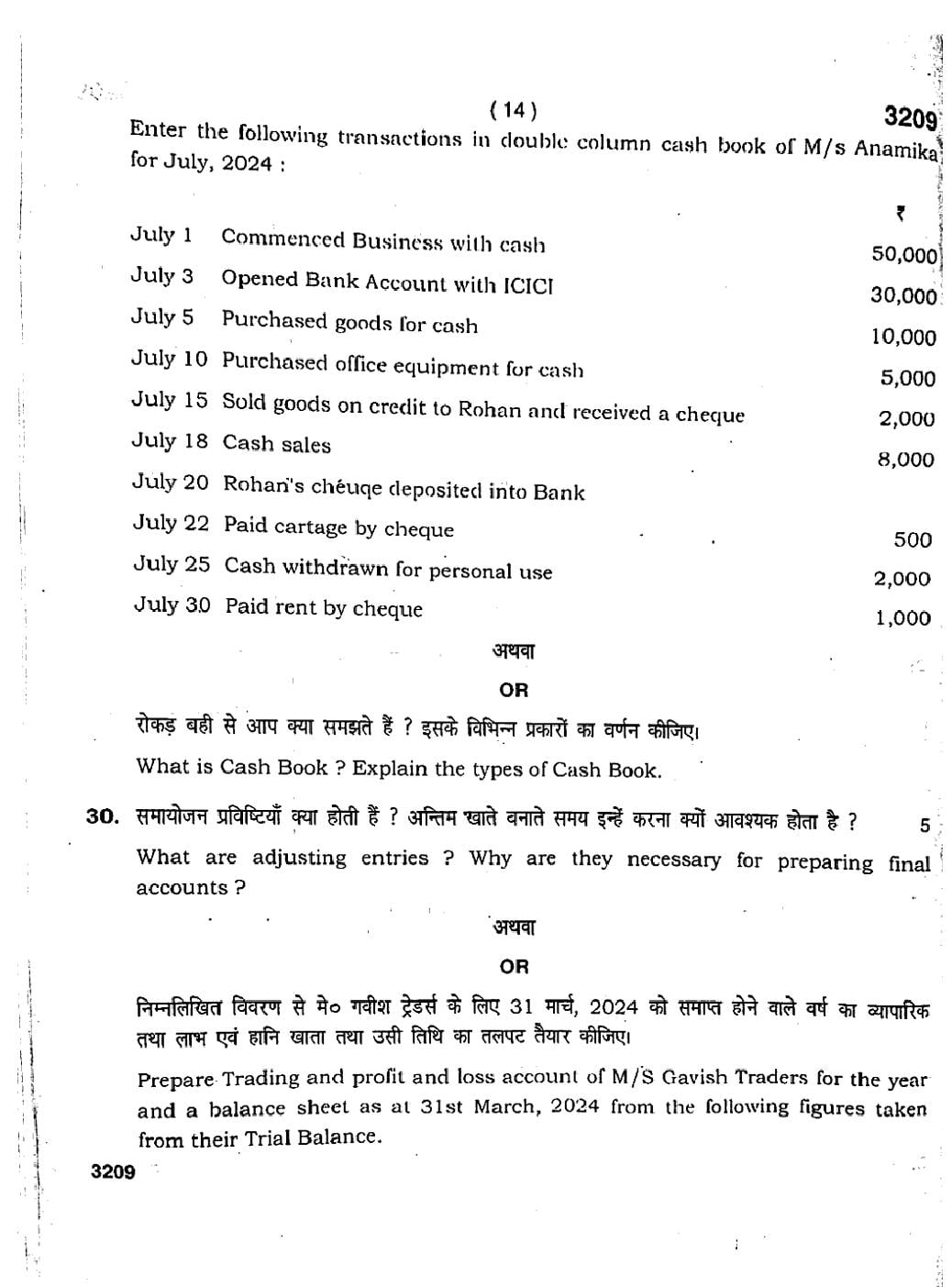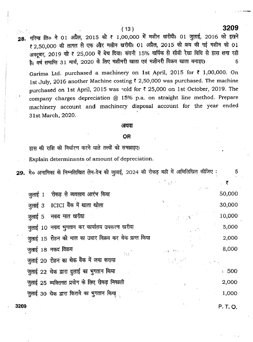 HBSE 11th Accountancy Previous Year Question Paper PDF