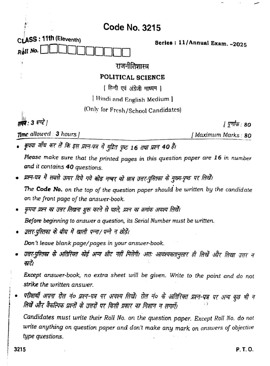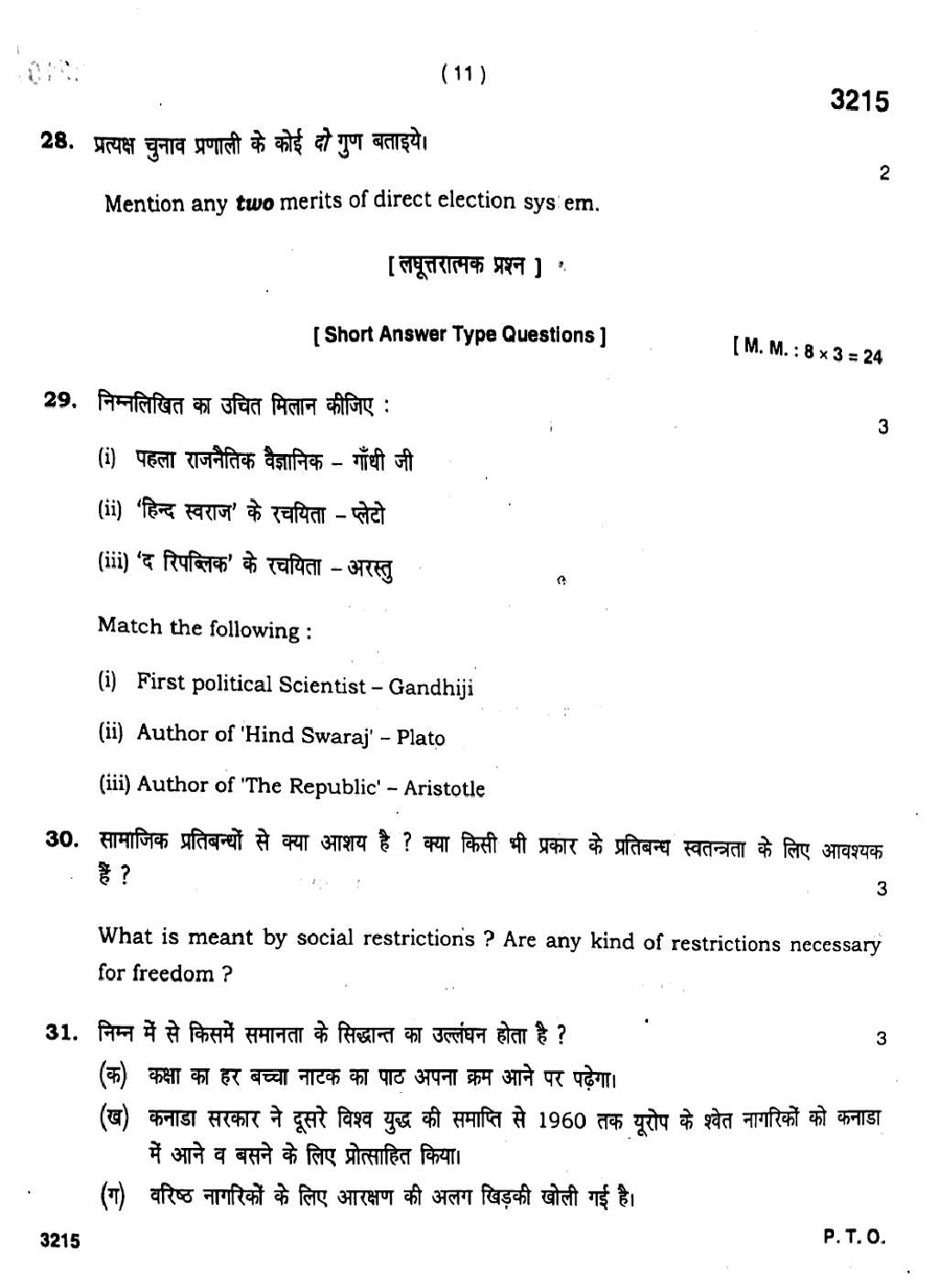More HBSE 11th Political Science Question Paper – Click Here for more PYQP PDF