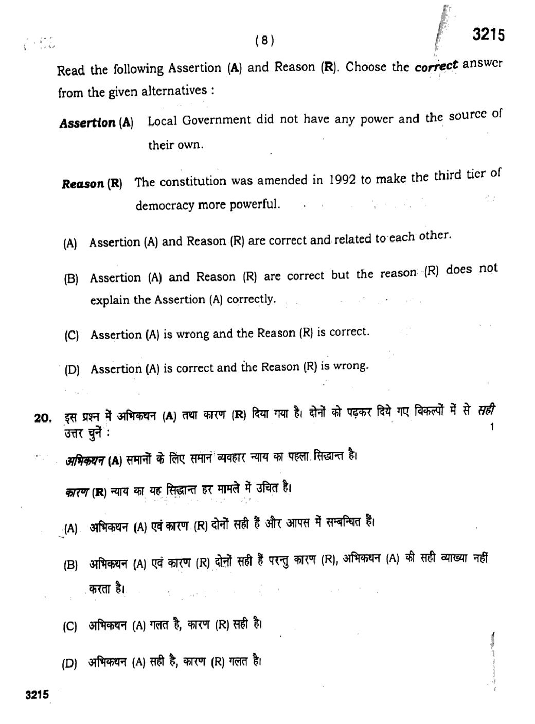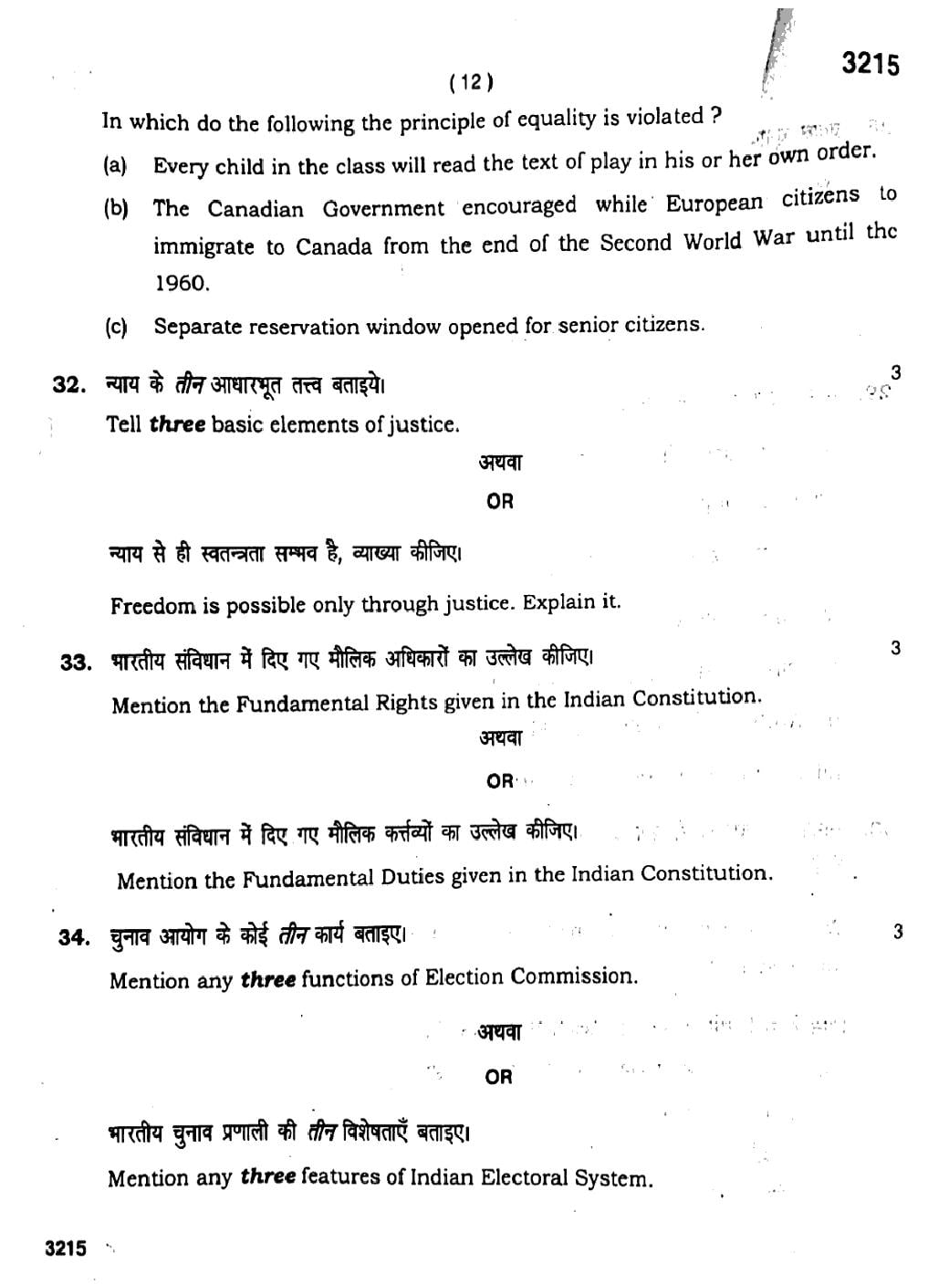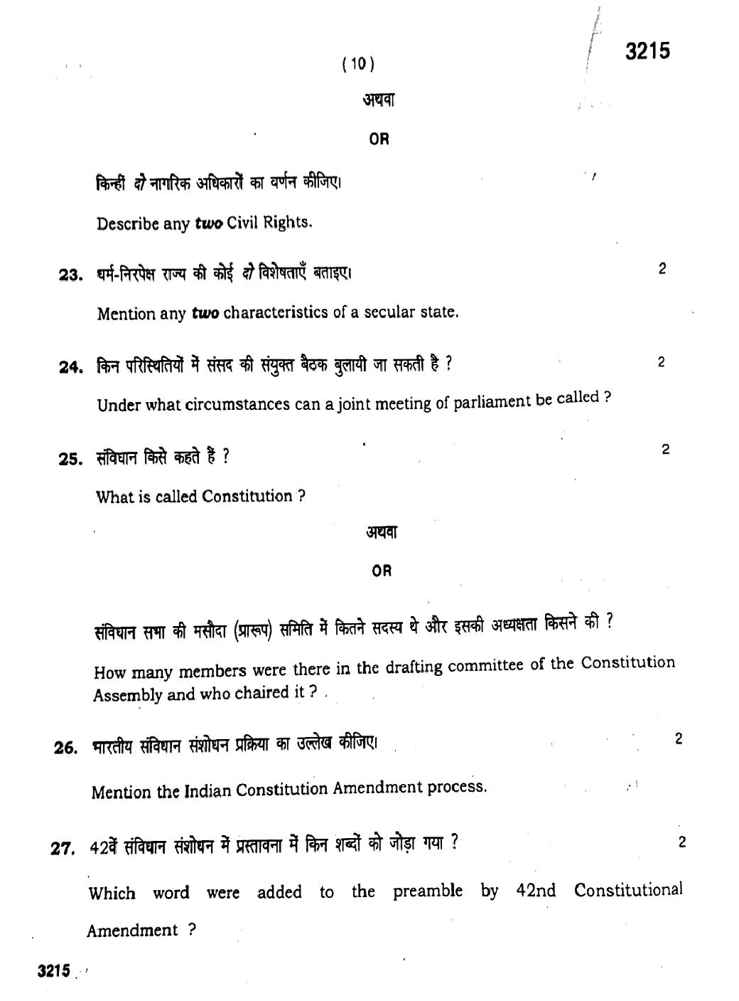 HBSE 11th Political Science Previous Year Question Papers