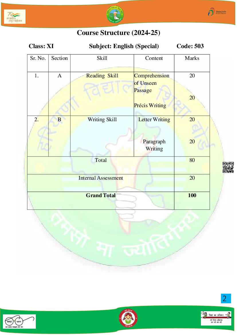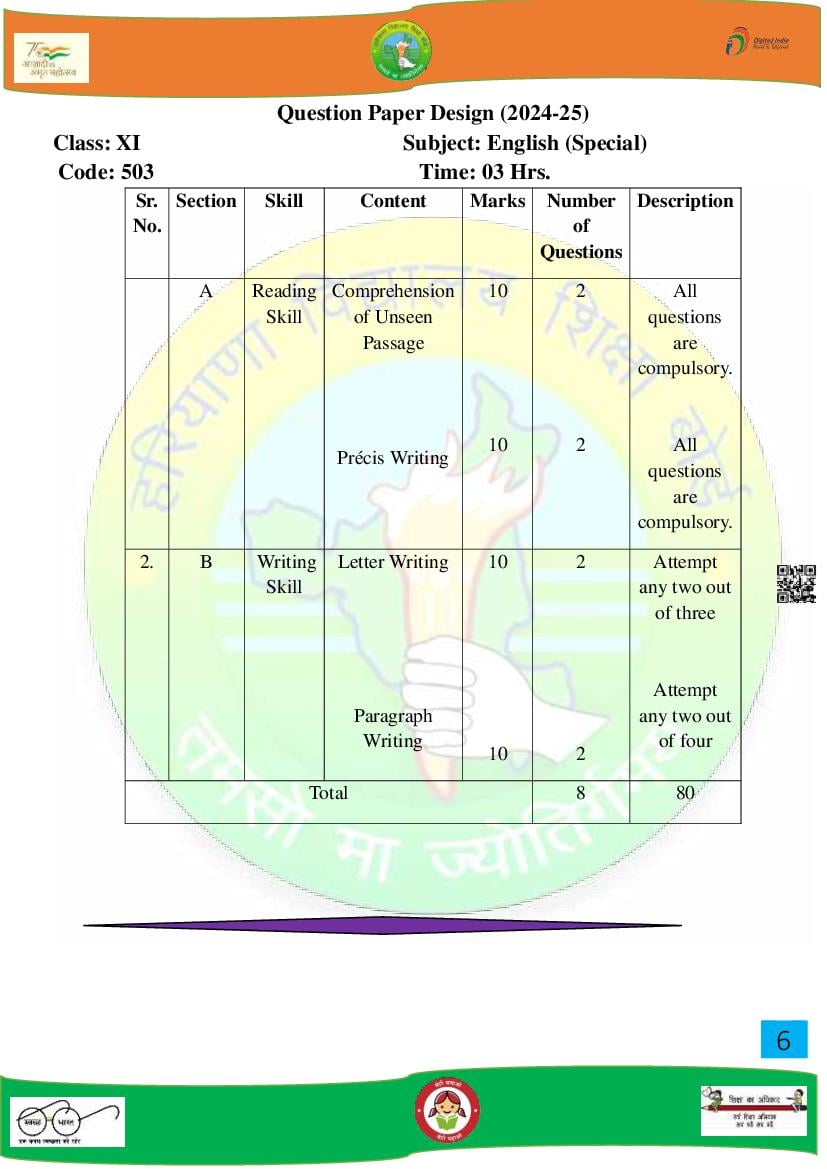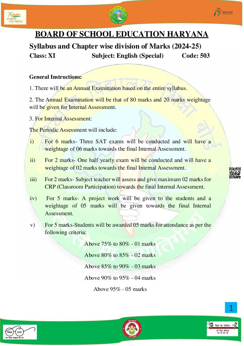 HBSE Class 11 Syllabus 2025 English Special View Download
