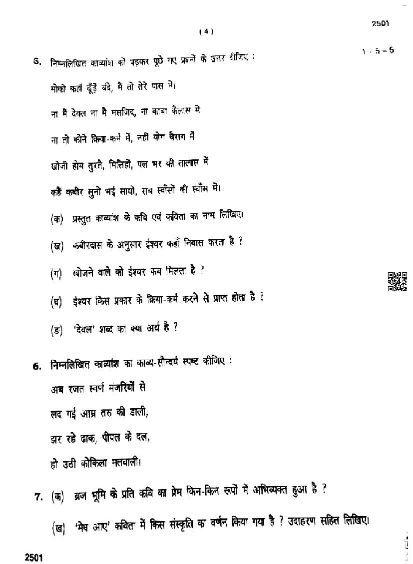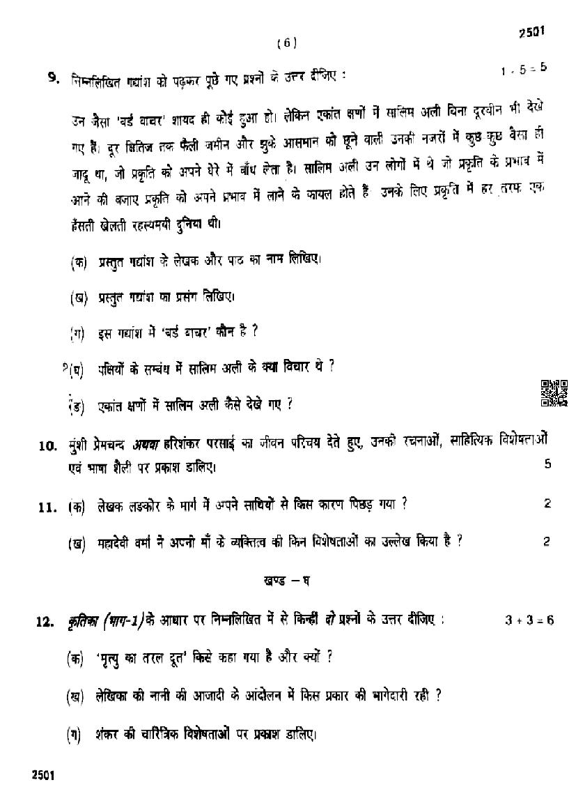 The HBSE Previous Year Question Papers 2024, 2023, 2022, 2021 and more of class 9 Hindi is as follows.
