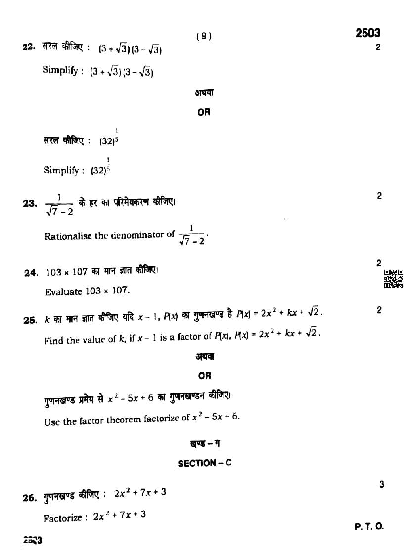 More HBSE 9th Maths Question Paper – Click Here for more PYQP PDF