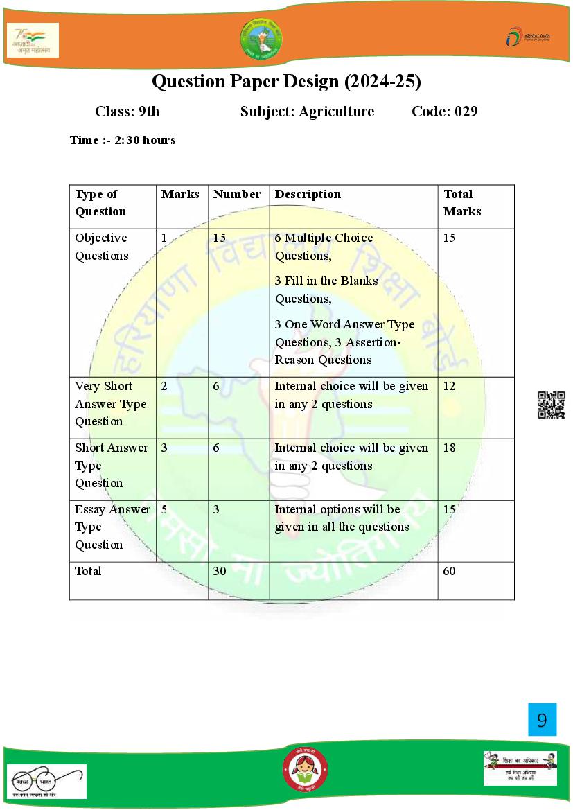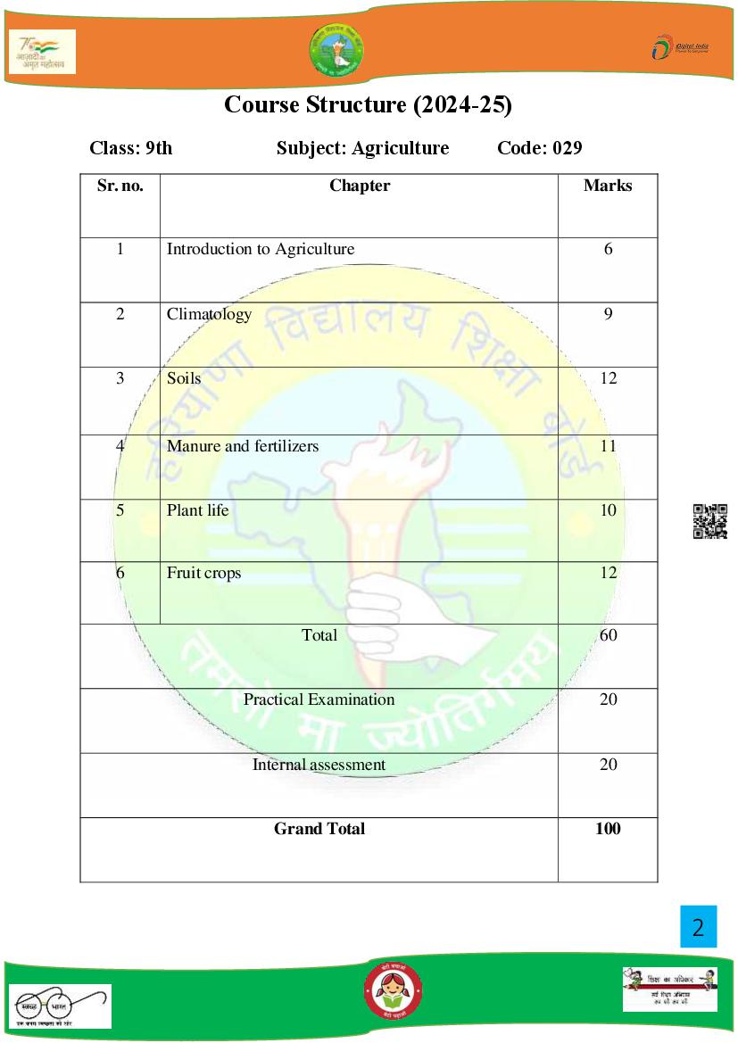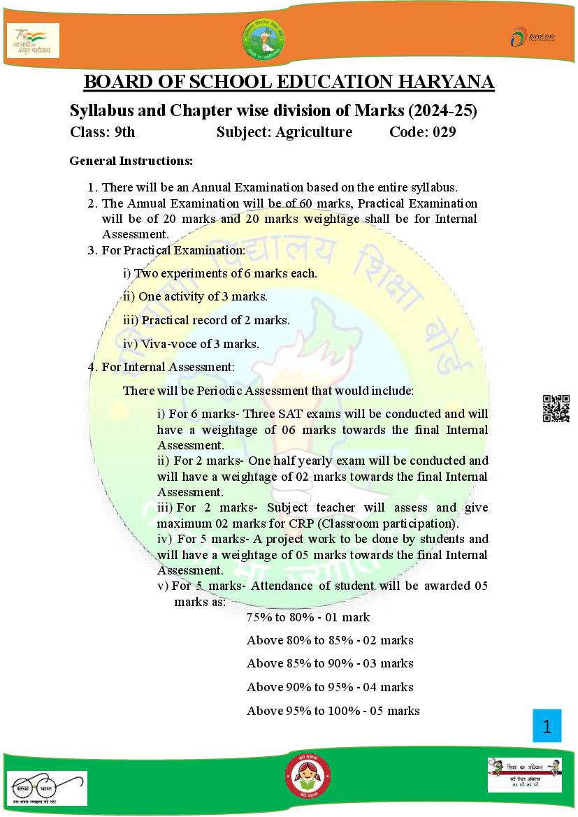 HBSE 9th Syllabus 2025 Agriculture PDF