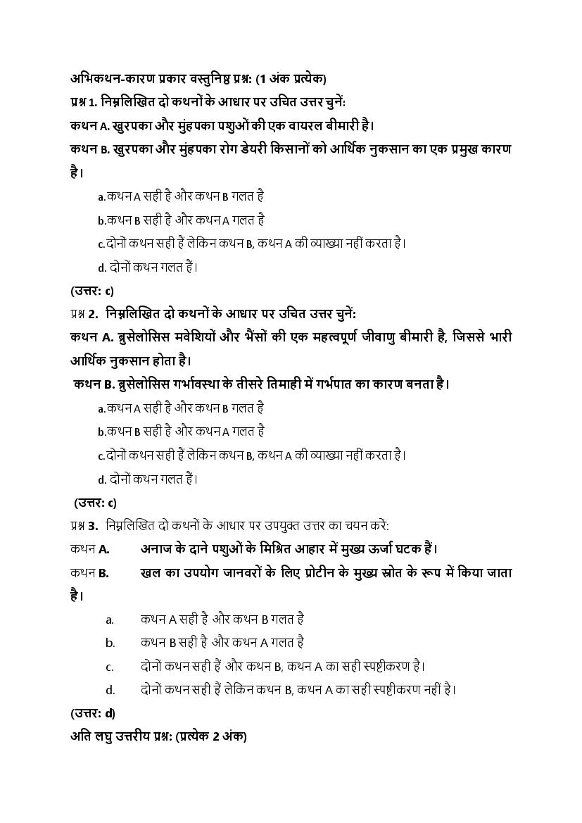 HBSE Class 10 Sample Paper 2026 Animal Husbandry with Answers View Download
