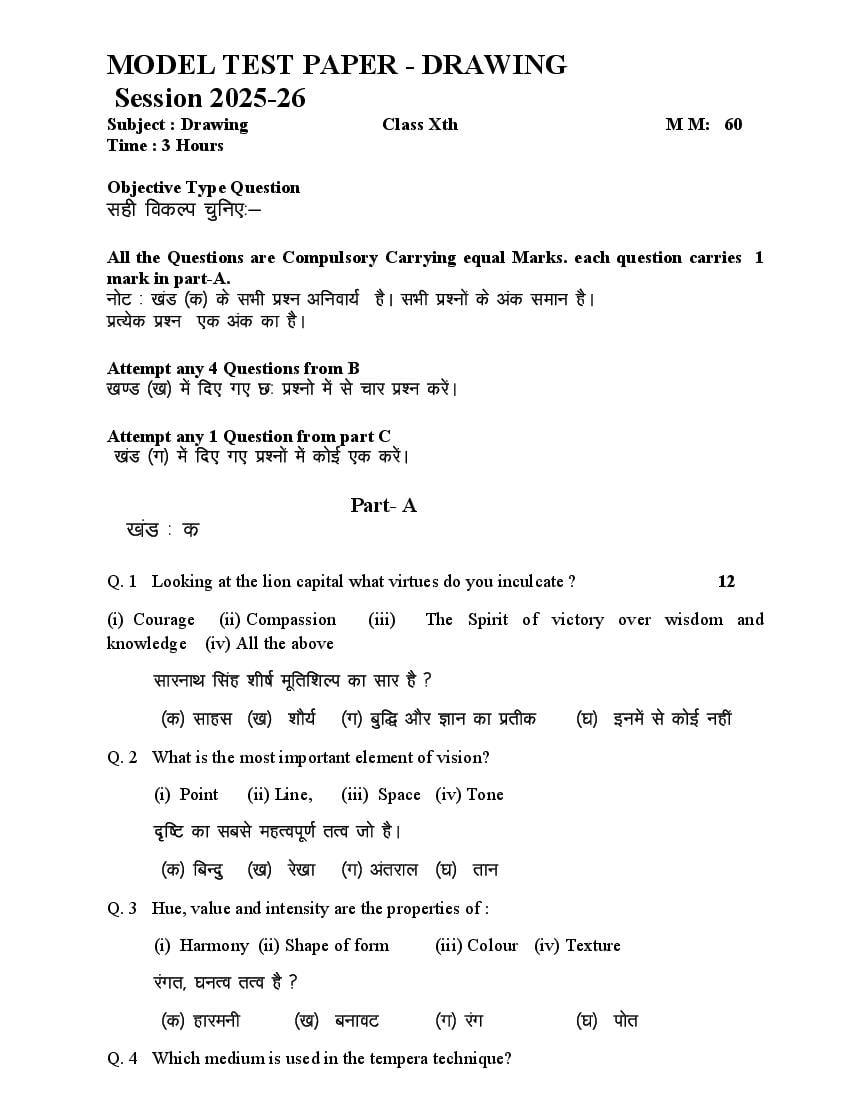 HBSE Class 10 Drawing Model Paper 2025 – Click Here to Download Model Paper PDF