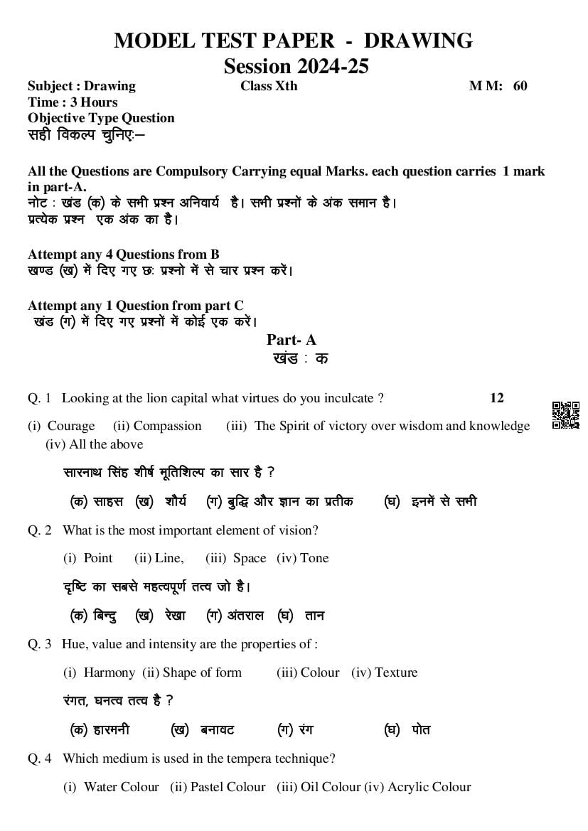 HBSE Class 10 Sample Paper 2025 Drawing View Download
