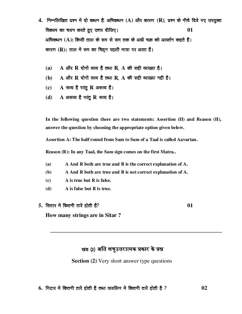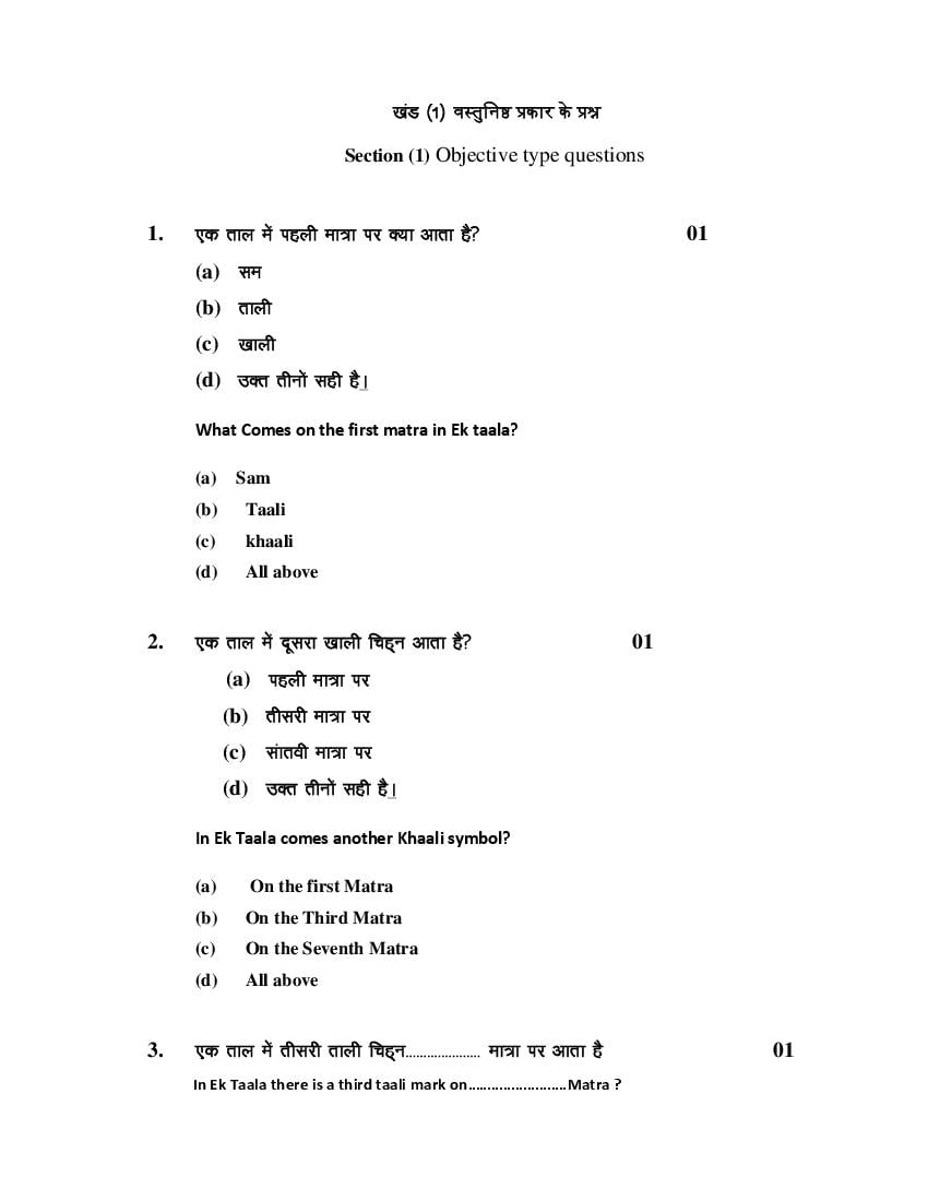 HBSE Class 10th Model Question Paper for Hindustani Music Instrument Melodic – An Overview