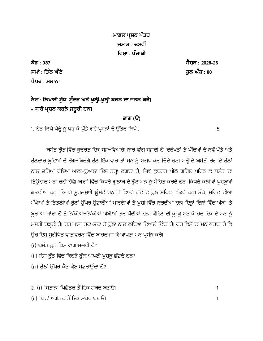 HBSE Class 10 Punjabi Model Paper 2026 is now available for download from Haryana Board of School Education. Use the HBSE Sample Paper for Class 10 to prepare for the Punjabi exam. Achieving a high percentage in Punjabi is crucial for a strong overall score in board exams. If you are in the senior secondary of the Haryana Board, ensure to download the HBSE 10th Sample Paper PDF of Punjabi to aid in your board exam preparations.
