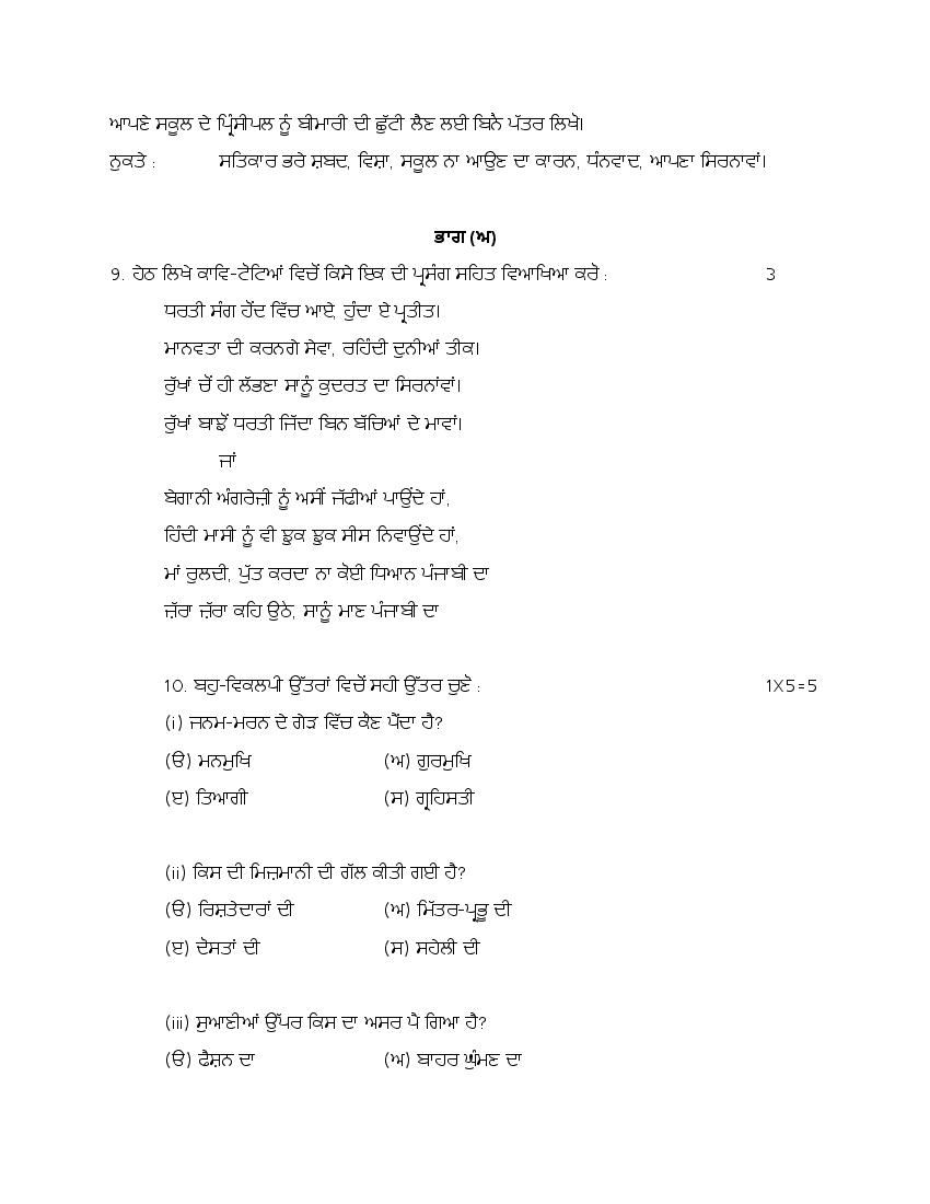 The Haryana Board Model Question Paper of Class 10 Punjabi contains specimen questions from the latest HBSE syllabus. In addition, the exam pattern is as per Punjabi question paper. Therefore solving the HBSE Class 10 Sample Paper of Punjabi helps you prepare for the boar exam.