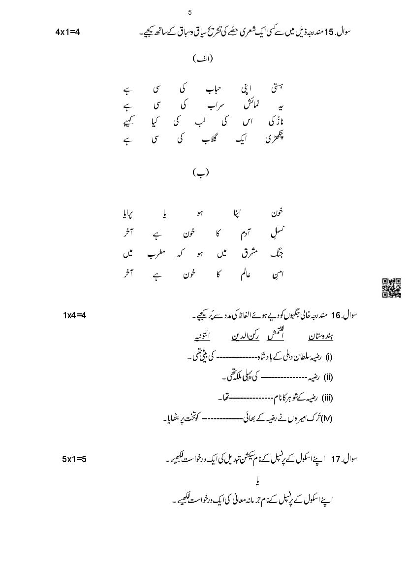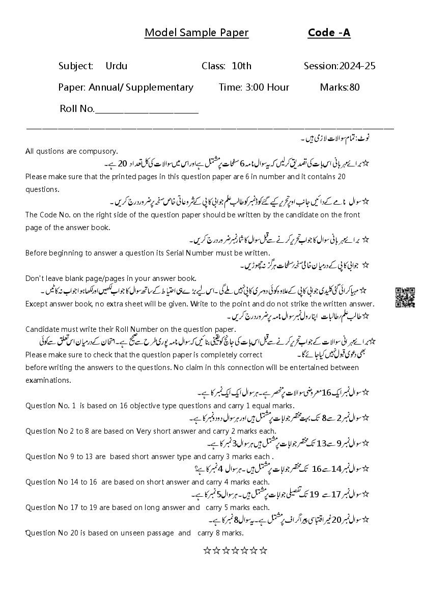 HBSE Class 10 Sample Paper 2025 Urdu View Download