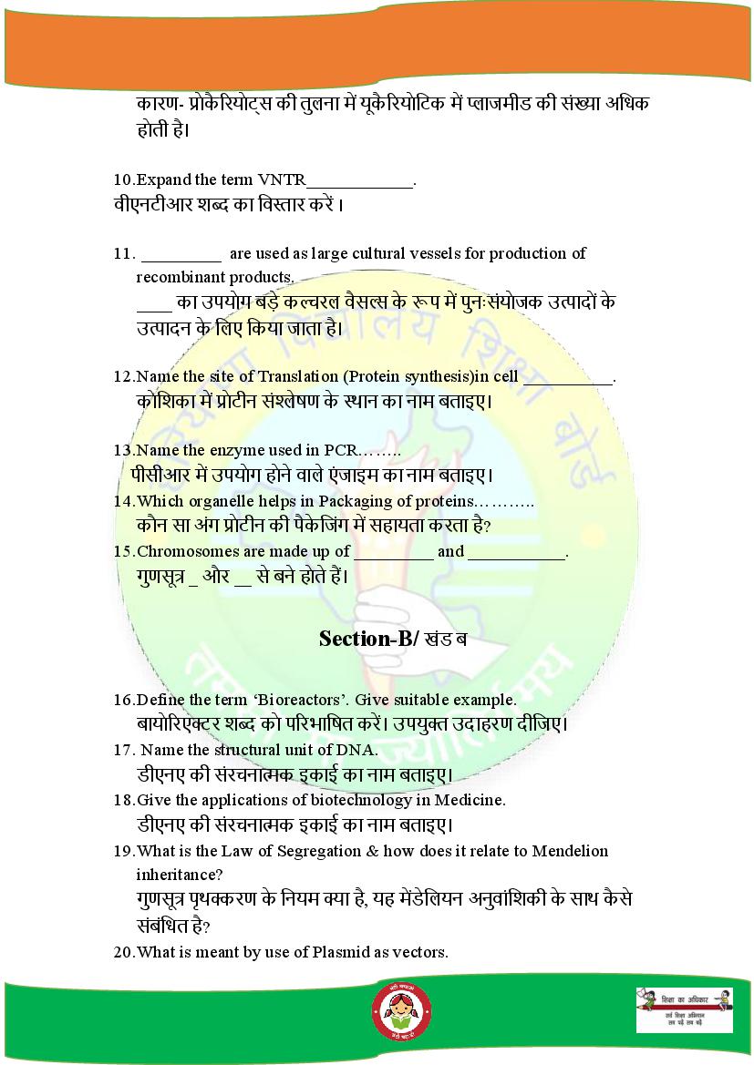 - Finish your preparation by using Haryana Board Class 11th Biotechnology Model Question Paper.