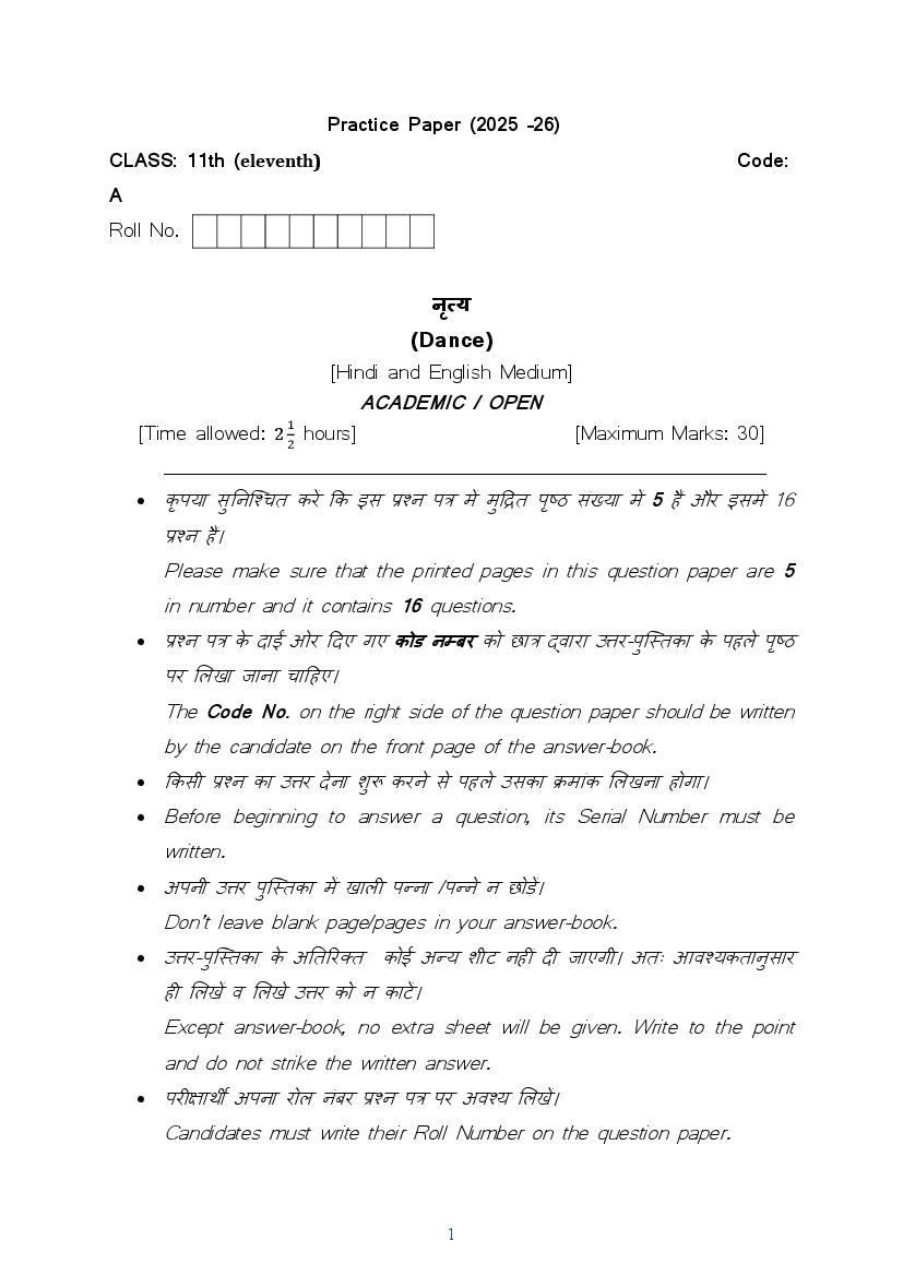 HBSE Class 11 Dance Model Paper 2026 is now available for download from Haryana Board of School Education. Use the HBSE Sample Paper for Class 11 to prepare for the Dance exam. Achieving a high percentage in Dance is crucial for a strong overall score in board exams. If you are in the senior secondary of the Haryana Board, ensure to download the HBSE 11th Sample Paper PDF of Dance to aid in your board exam preparations.