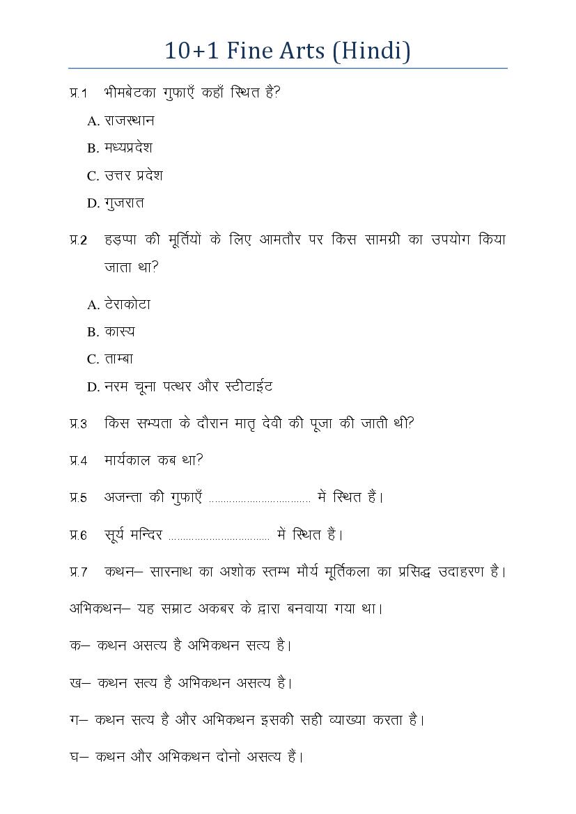 The subject-wise HBSE class 11 model papers are as follows. Besides downloading the Fine Arts sample paper here, solve the papers of other subjects as well.