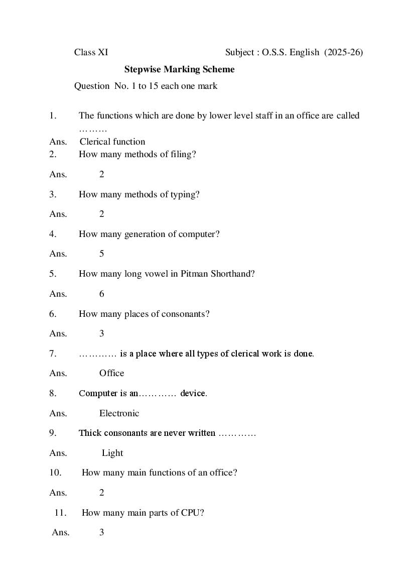 The subject-wise HBSE class 11 model papers are as follows. Besides downloading the OSS English sample paper here, solve the papers of other subjects as well.