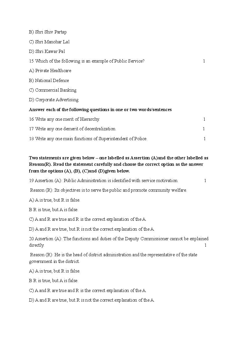 HBSE Class 11 Public Administration Sample Paper 2024 – Click Here to Download Practice Paper PDF