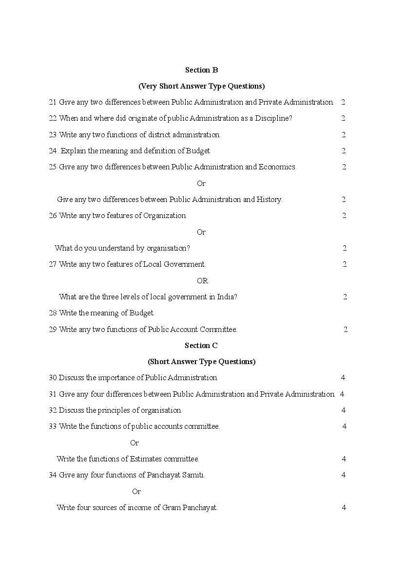HBSE Class 11 Sample Paper 2026 Public Administration View Download