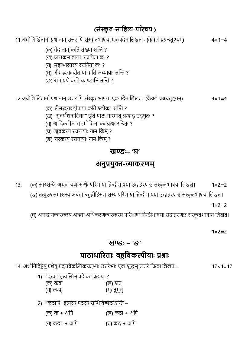 HBSE Class 11 Sanskrit Sample Paper 2024 – Click Here to Download Practice Paper PDF