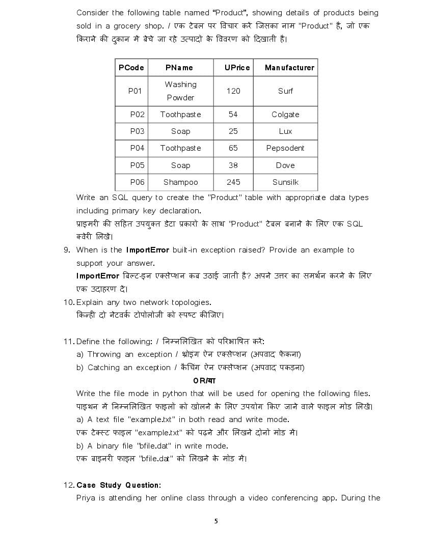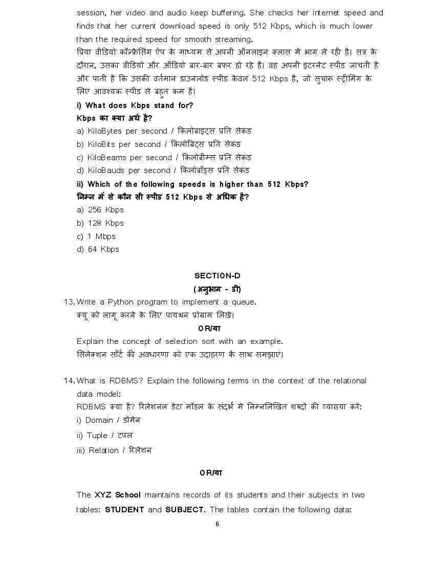 HBSE Class 12 Computer Science Sample Paper 2024 – Click Here to Download Practice Paper PDF