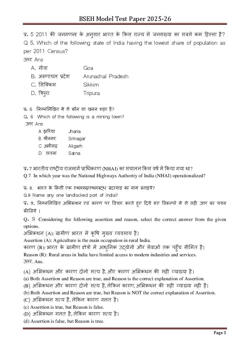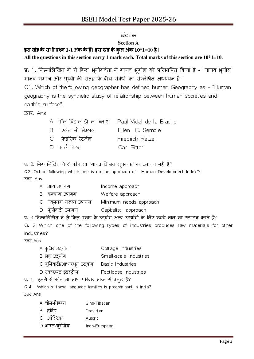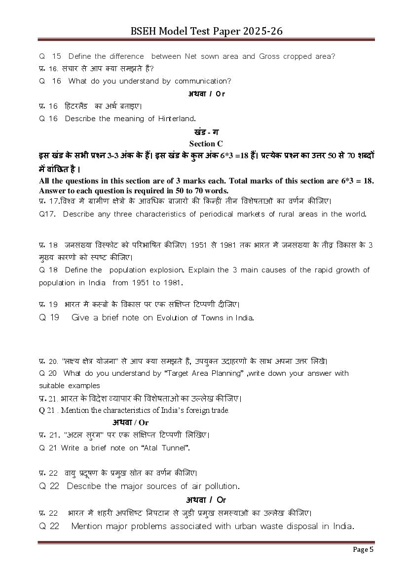 - Finish your preparation by using Haryana Board Class 12th Geography Model Question Paper.