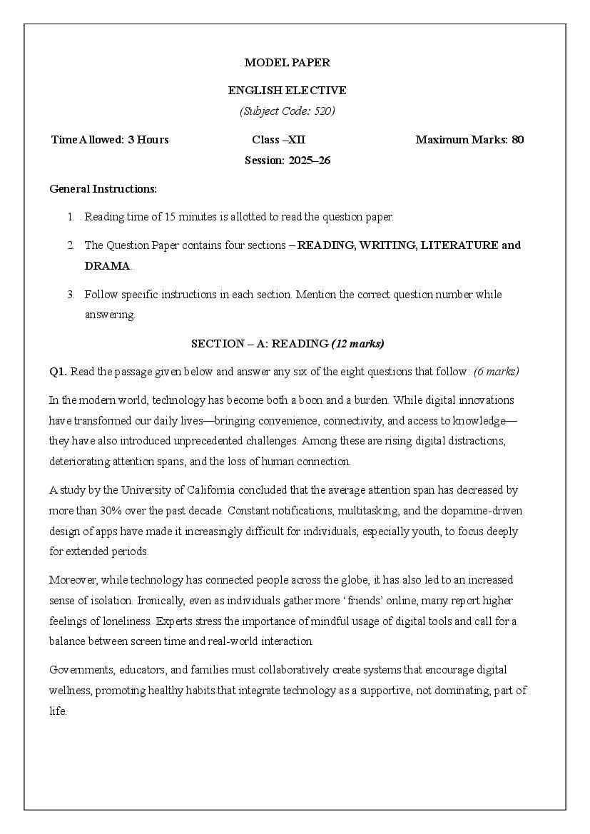 If you have any questions on HBSE Class 12 English Elective Sample Paper 2026, then please ask in comments below.