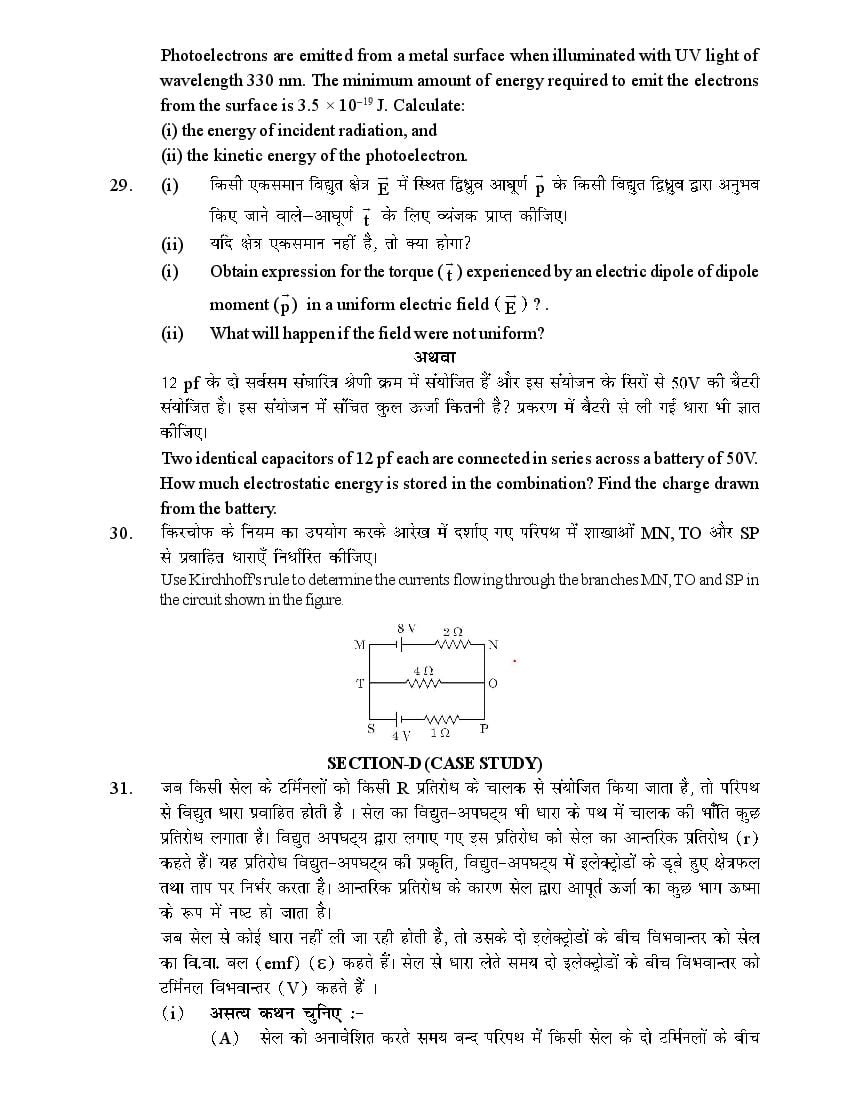 HBSE Class 12 Sample Paper 2026 Physics View Download