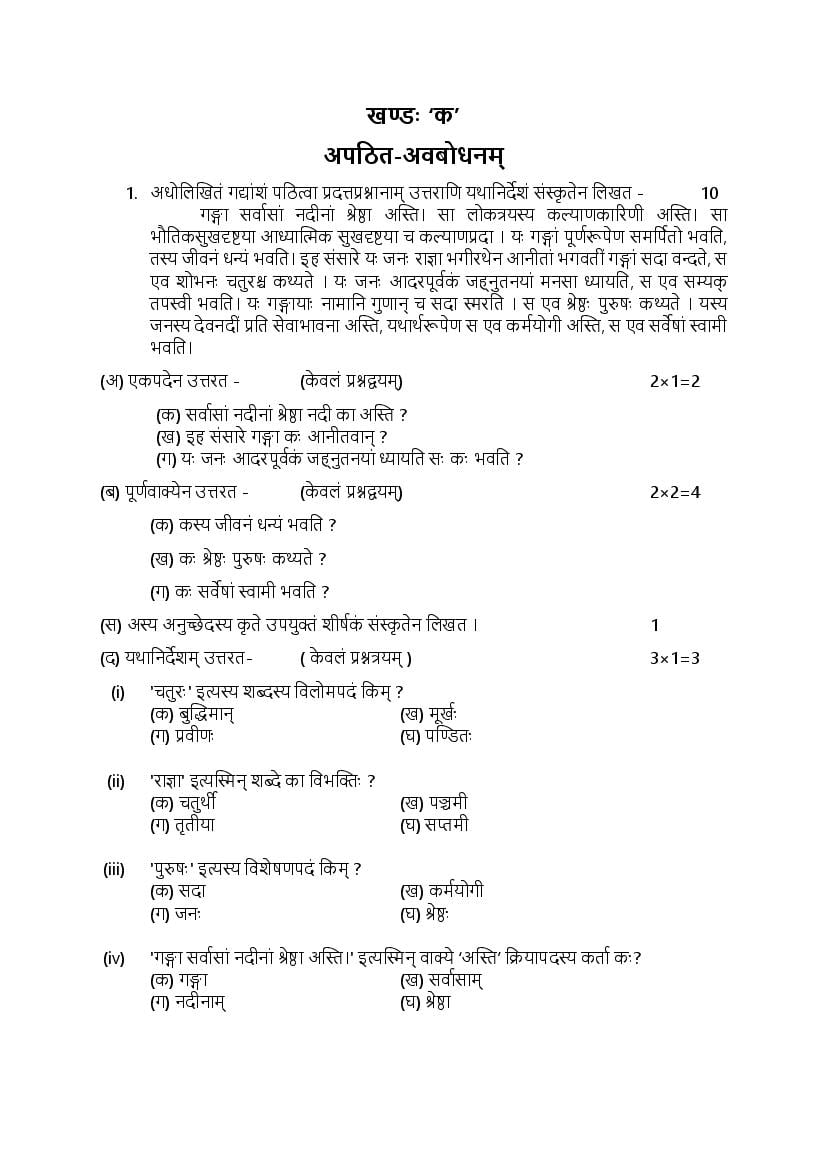 HBSE Class 12th Model Question Paper for Sanskrit – An Overview