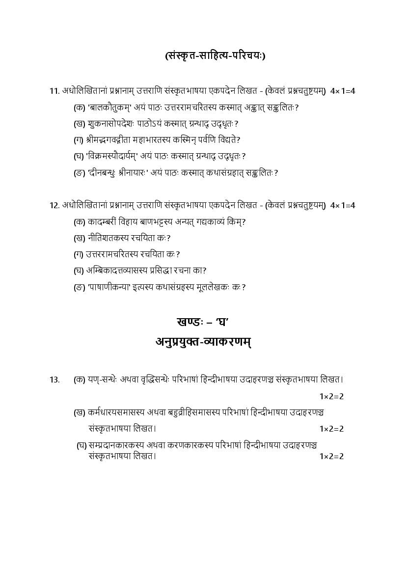 HBSE Class 12 Sanskrit Sample Paper 2024 – Click Here to Download Practice Paper PDF