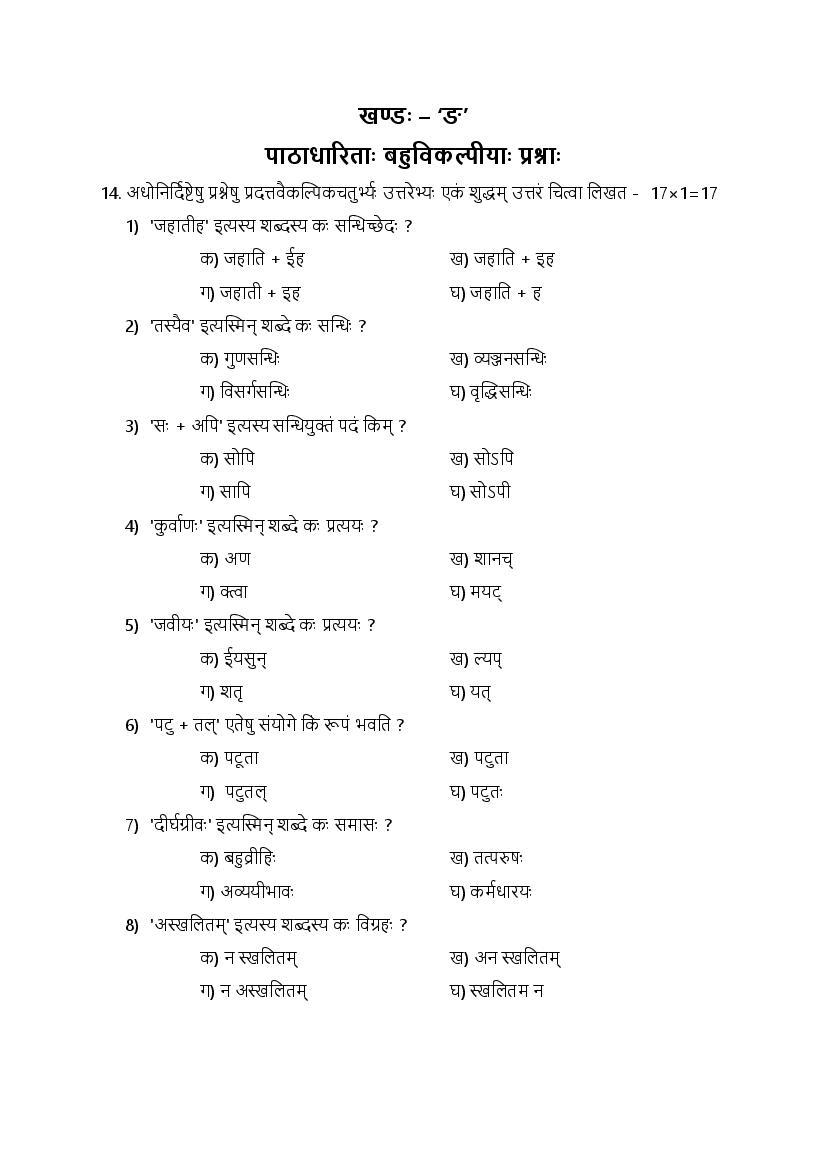 - Finish your preparation by using Haryana Board Class 12th Sanskrit Model Question Paper.