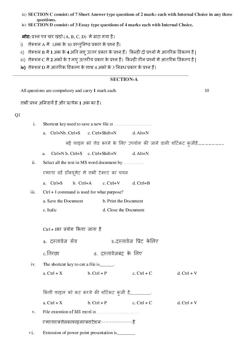 HBSE Class 9th Model Question Paper for Computer Science – An Overview