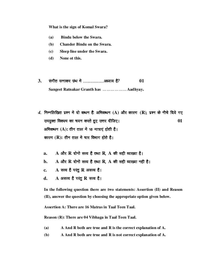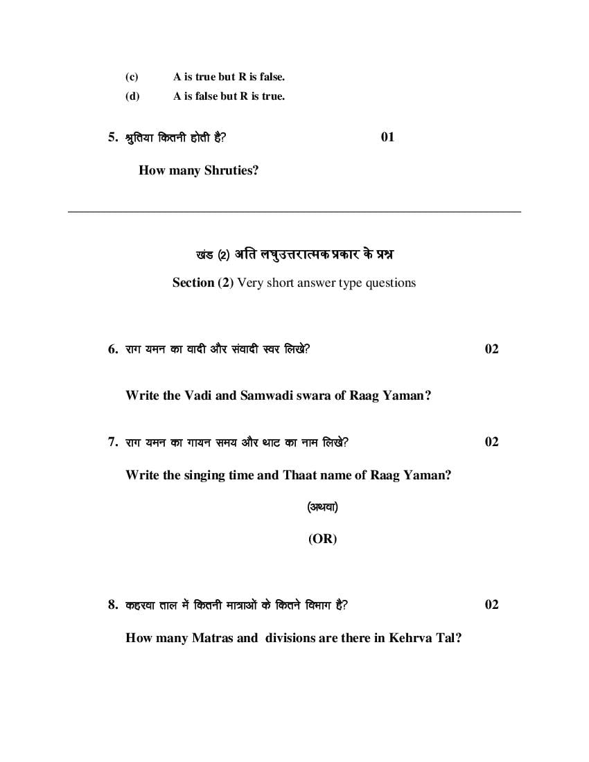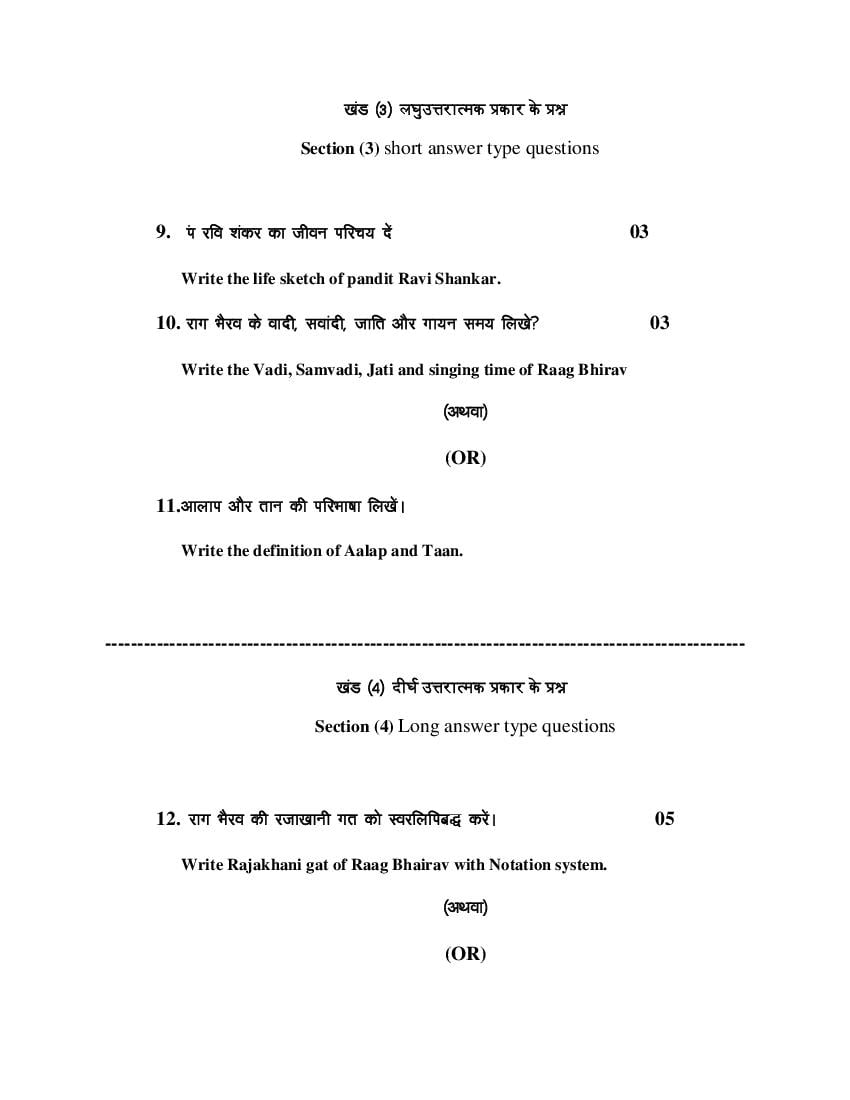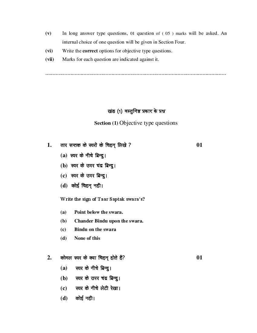 HBSE Class 9th Model Question Paper for Hindustani Music Instrumental Melodic – An Overview
