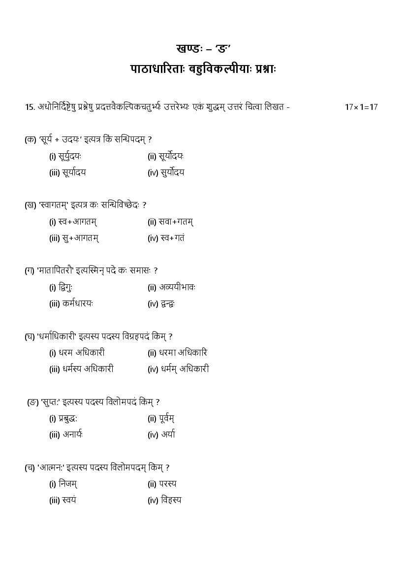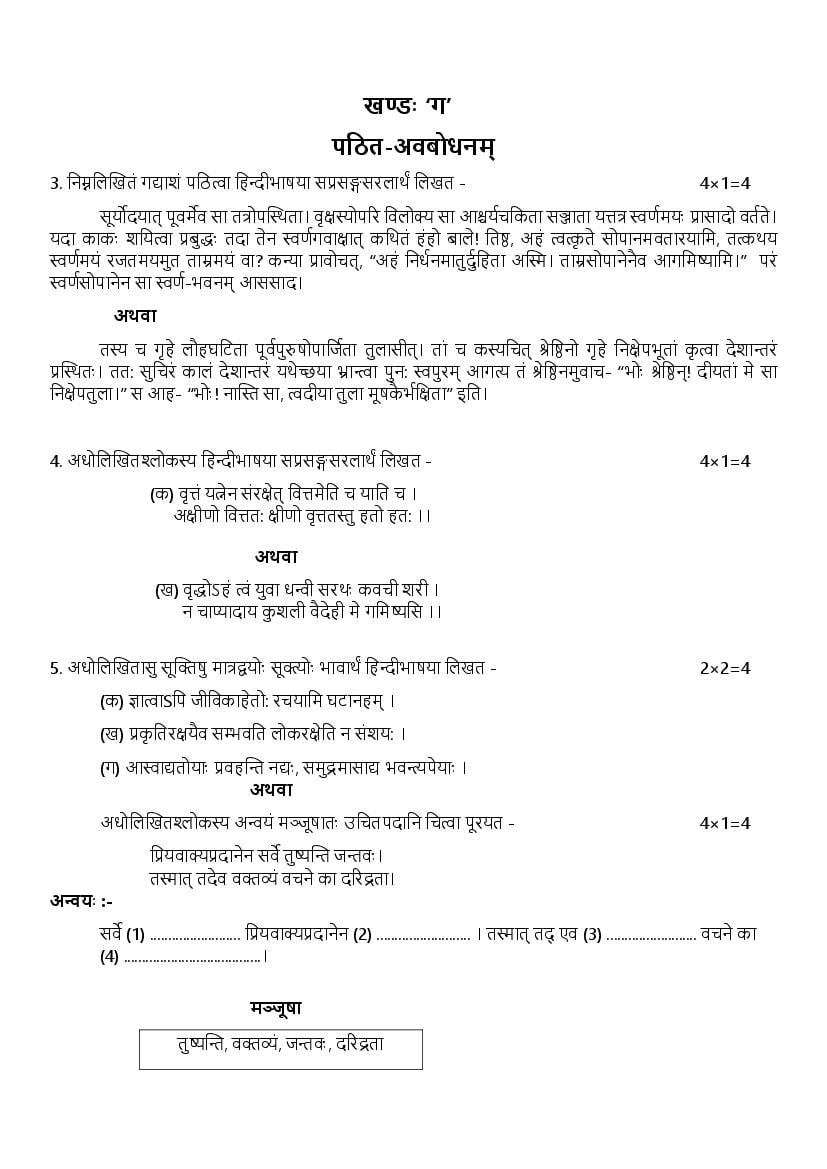 - Finish your preparation by using Haryana Board Class 9th Sanskrit Model Question Paper.