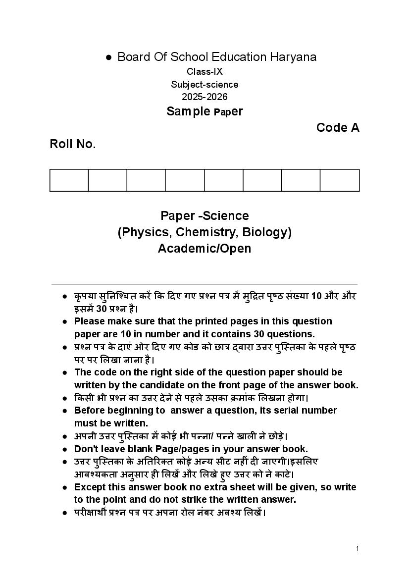 If you have any questions on HBSE Class 9 Science Sample Paper 2026, then please ask in comments below.