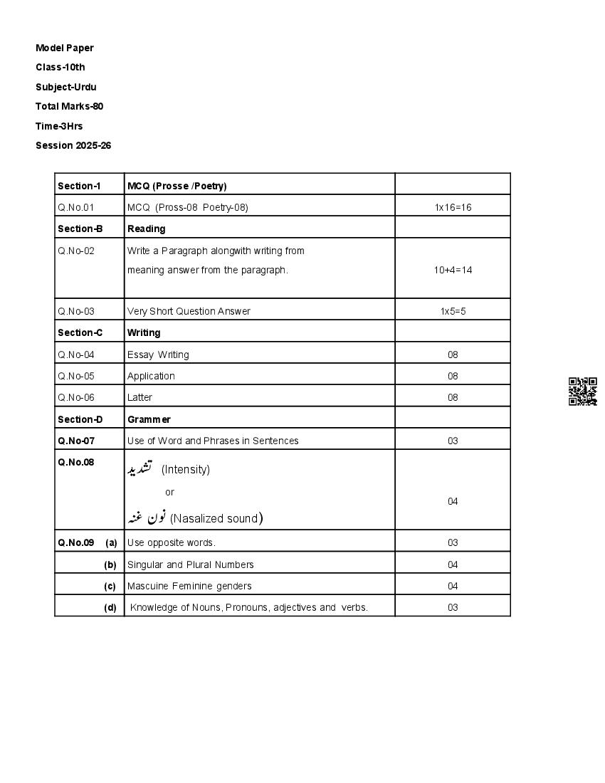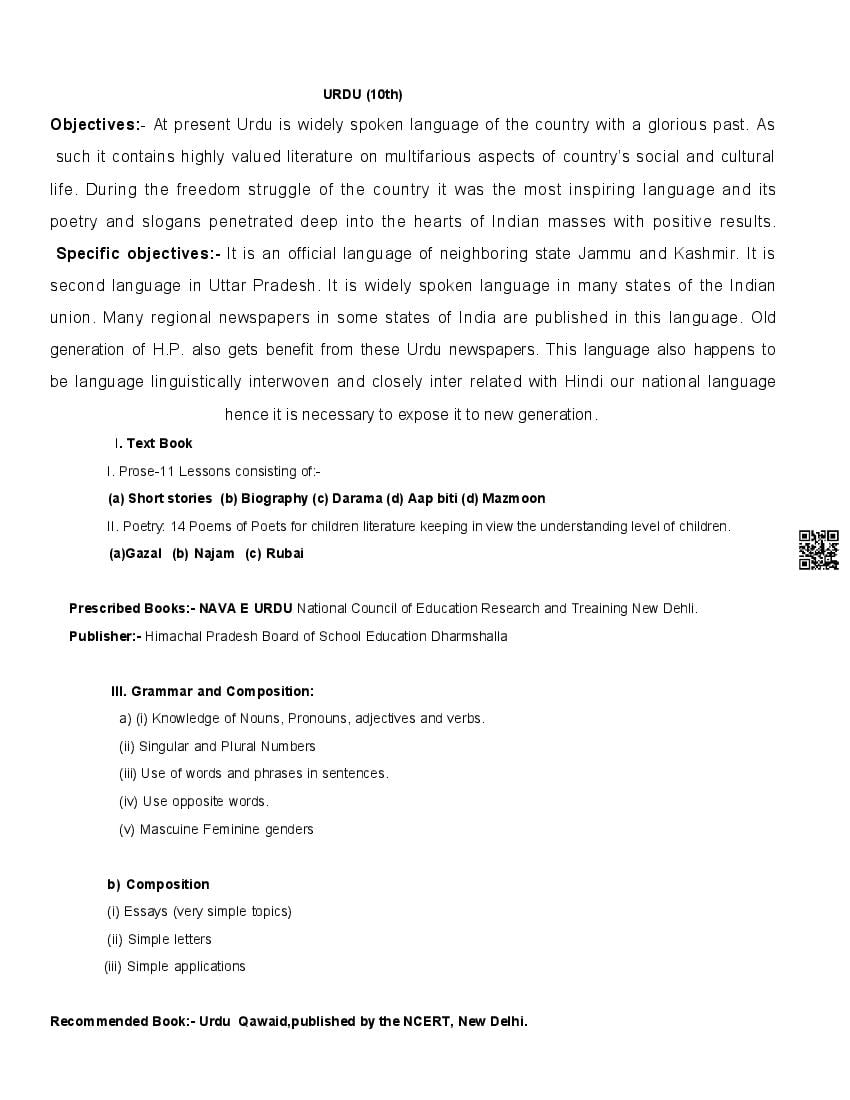 - HP Board Class 10 class Urdu Syllabus 2026 has been published by HPBOSE.