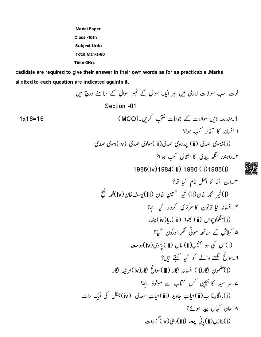 | Subject | Urdu |