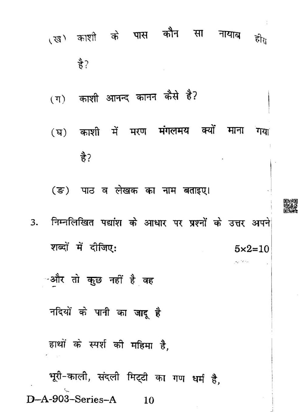 | Study Material Here | HP Board Previous Year Question Paper for Class 10 Hindi |
