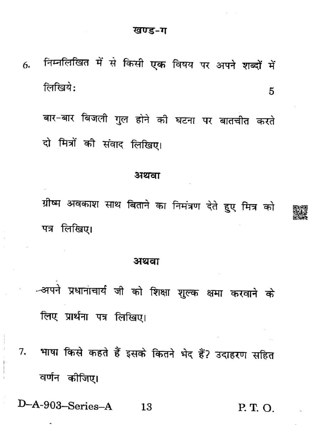 HP Board Class 10th Hindi Question Paper 2024 PDF – Click Here to Download Question Paper PDF