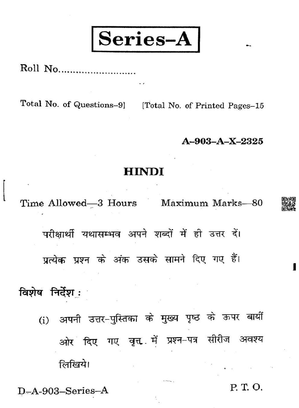 HP Board Class 10 Question Paper 2025 Hindi View Download
