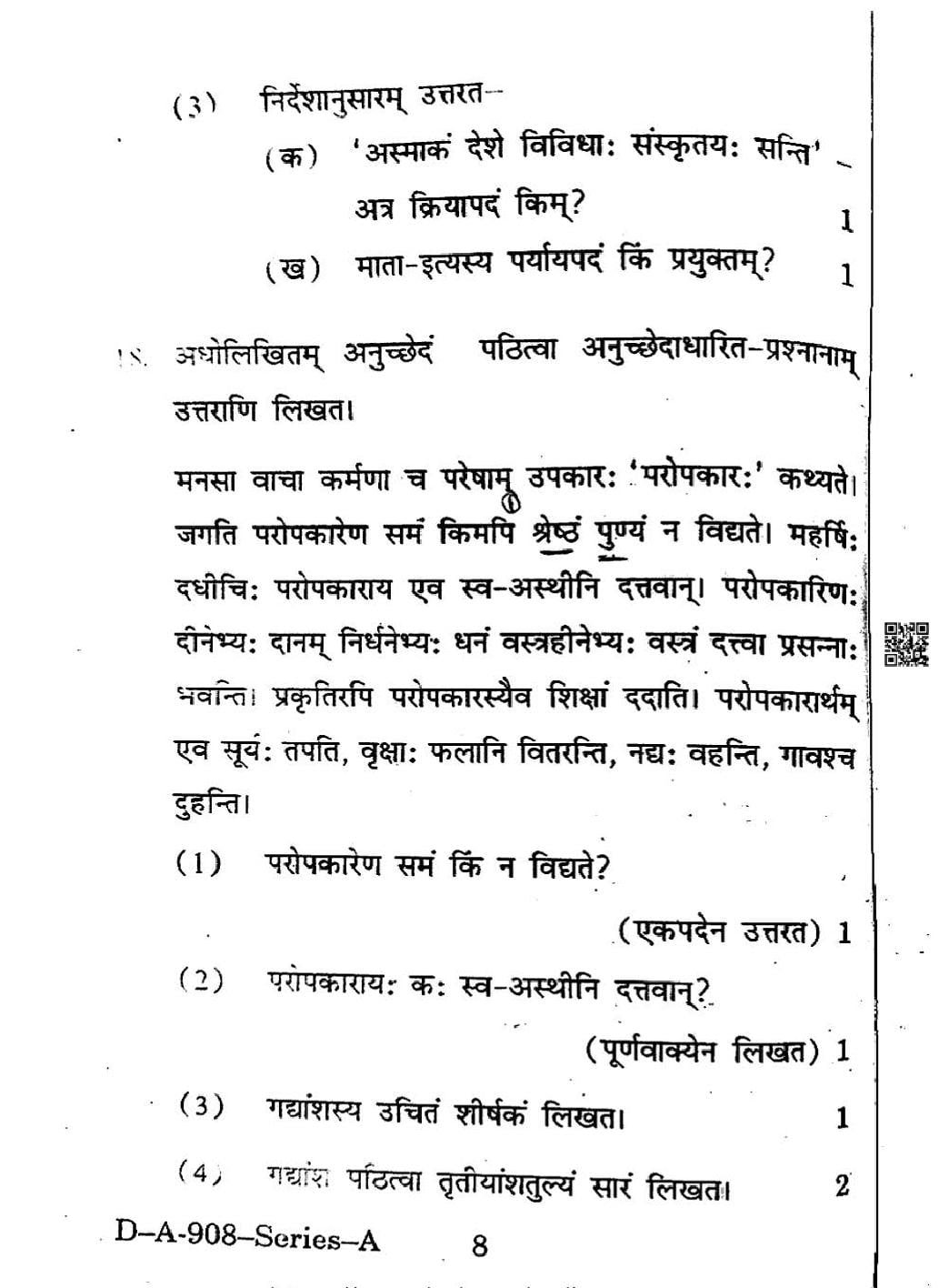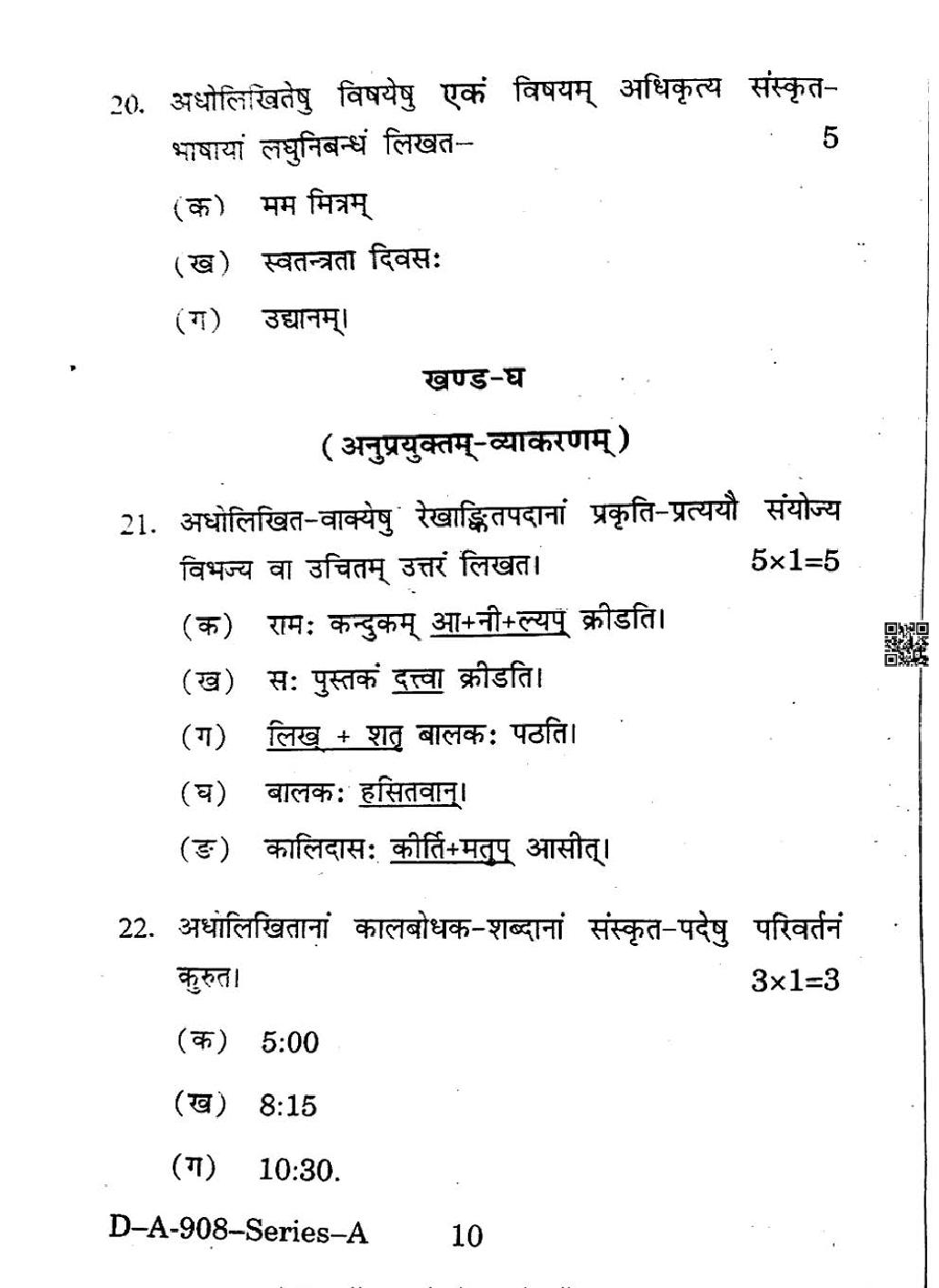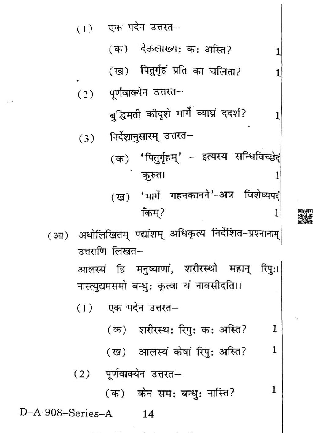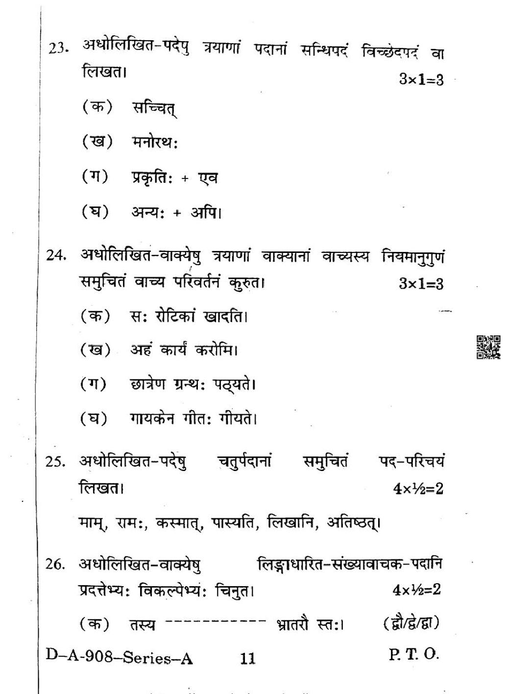 | Study Material Here | HP Board Previous Year Question Paper for Class 10 Sanskrit |